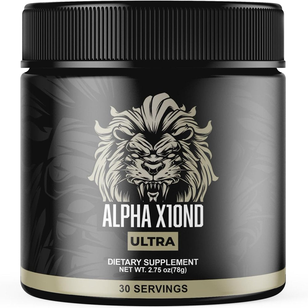 - Alpha X10ND Ultra Powder supplement non GMO Gluten Free manufactured in the USA.