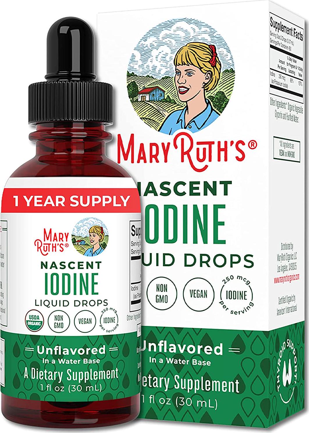 An Essential Micronutrient If youre looking for a powerful aqueous iodine supplement then look no further than MaryRuths Iodine Drops! As a perfect complement to a healthy diet, these powerhouse iodine drops will deliver a multitude of benefits, acting as an activator for optimal hormone production, better health & increased beauty. Some people are surprised that they arent getting enough iodine when eating a clean, plant-based diet. Goitrogens are substances that interfere with the way the body uses iodine. They are present in some plant foods including soy, and cruciferous vegetables such as cabbage, broccoli, cauliflower and brussels sprouts. Each serving of our Pure Iodine contains more than the recommended average daily dose (250mcg). Please consult your physician or healthcare professional to help assess the proper dosage for your body. Excessive iodine consumption can lead to complications with the thyroid. MaryRuths Iodine Drops Are: Non-GMO | Vegan | Pectin Based | Dairy Free | Sugar Free | Gluten & Wheat Free | Soy Free | Nut Free | Nightshade Free | Bariatric Friendly | Celiac Friendly MaryRuths Iodine Drops are delivered by a convenient and easy-to-take liquid dropper. MaryRuths drops are made in a GMP compliant facility & come in a glass bottle. Each bottle contains 1 oz, which will last over a year! Ask your healthcare provider to assist you in finding the optimal dose for your unique body. Then, allow your body to harness the phenomenal benefits of MaryRuths Iodine Drops & achieve your ideal level of health faster!