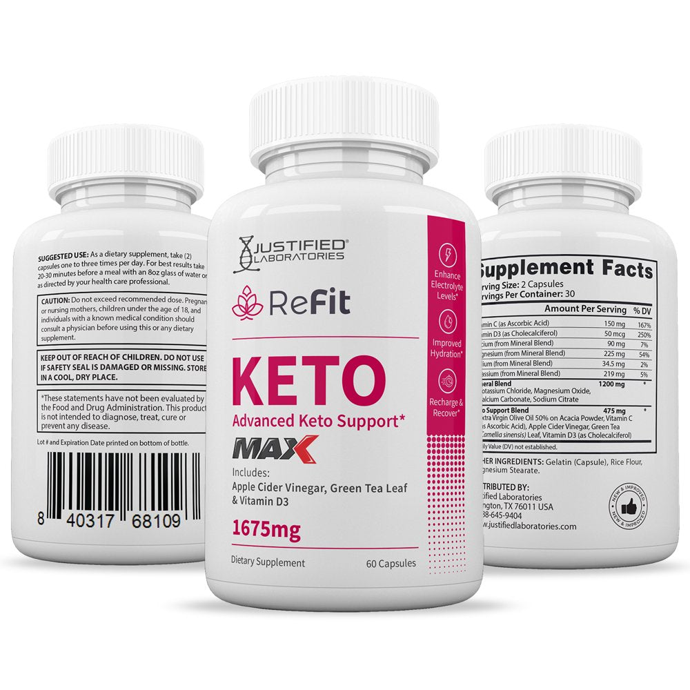 REFIT MAX KETO ACV PILLS: Justified Laboratories Keto Max Pills 1675 mg Proprietary Keto formula includes magnesium, calcium and sodium, which are key nutrients your body can be depleted of during ketosis.