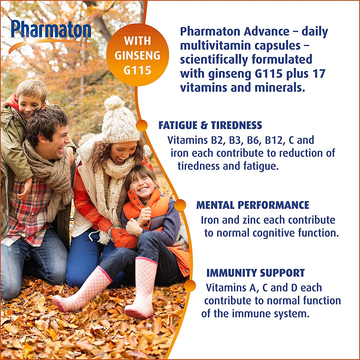 100 caplets, b vitamins, caplets, energy, immune support, immune system, iron, multivitamins and minerals, pharmaton advance multivitamins, zinc
