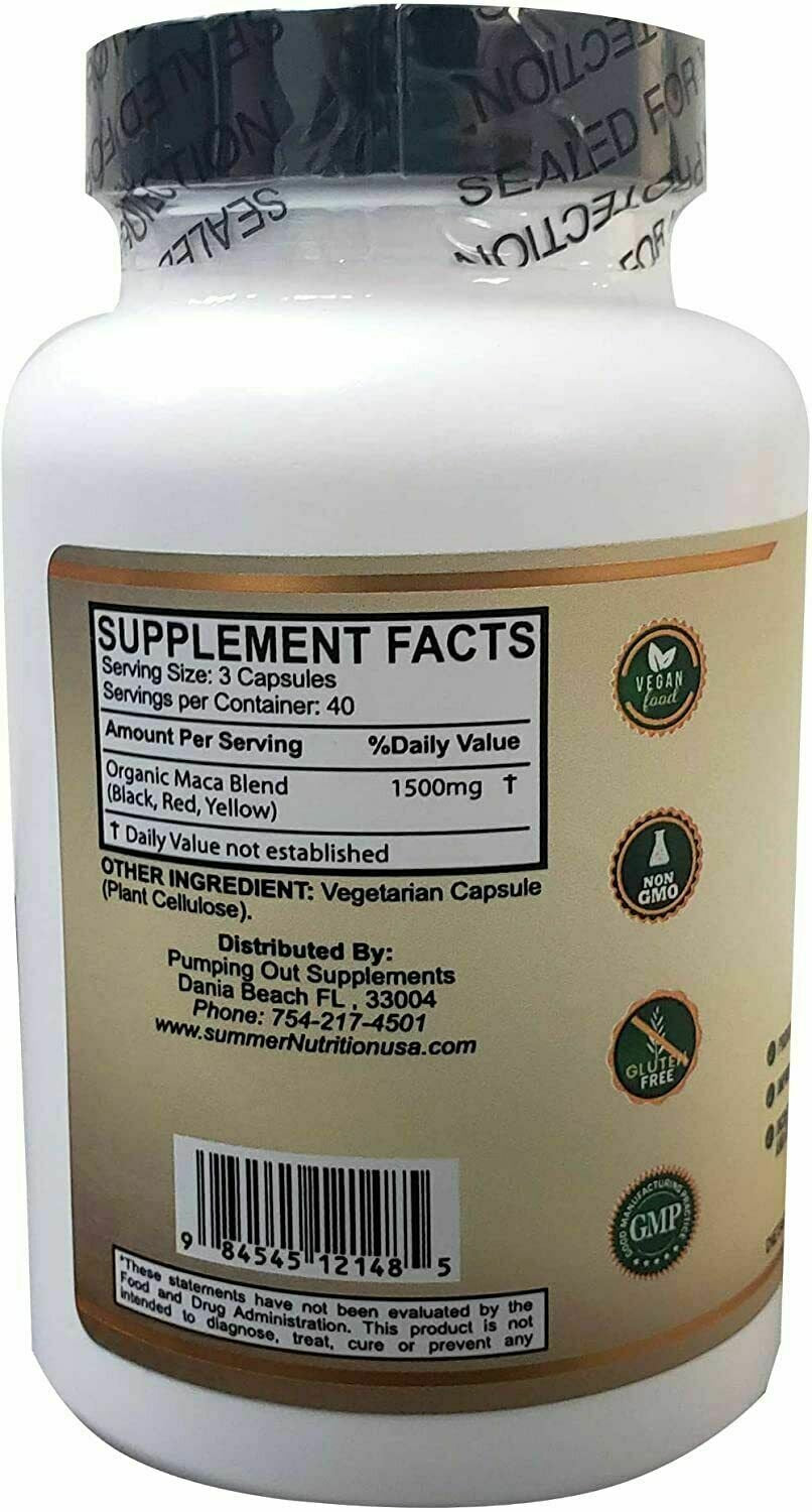 100% Maca - Peruvian & Organic - Summer Nutrition 120 Capsules 1500Mg Sexual Health Energy Sexual Health Fertility