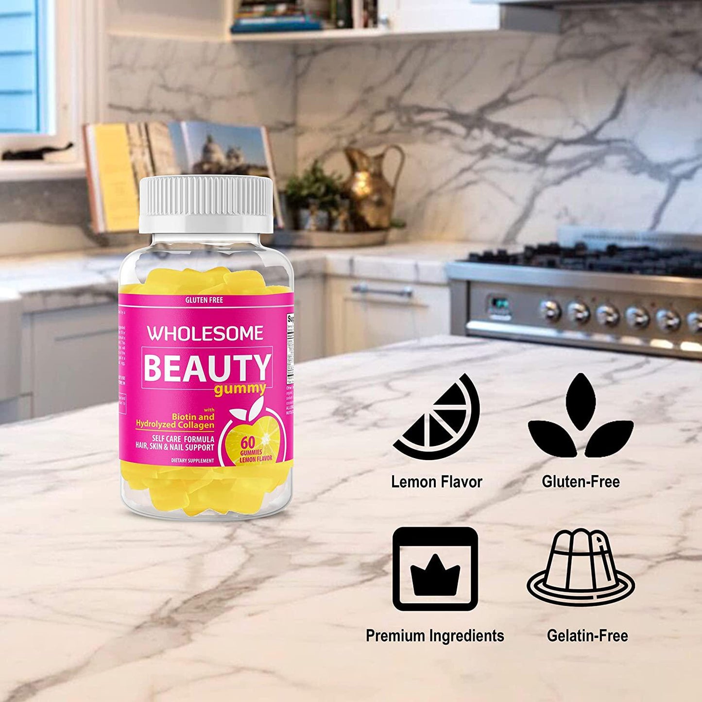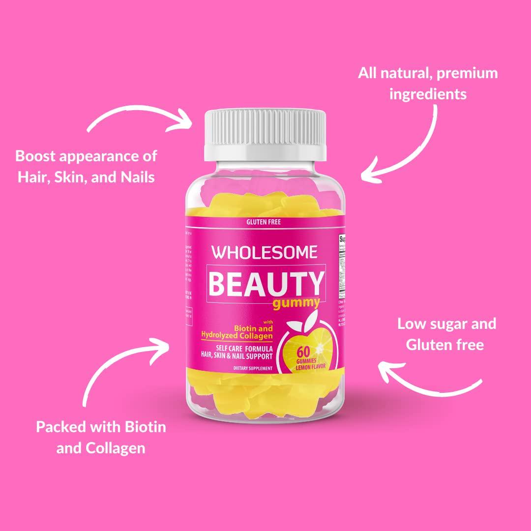 - PREMIUM HAIR SKIN AND NAILS VITAMINS - Wholesome Formula BEAUTY GUMMIES are a great tasting way to include the amazing biotin supplement with collagen for women who are looking for glowing skin, nail growth, and vitamins for hair growth. *