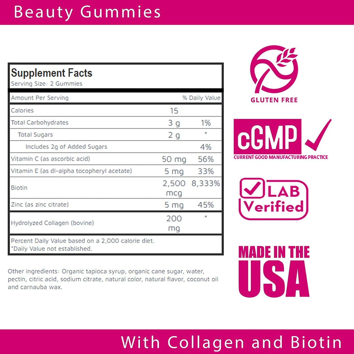 beauty gummies, biotin, collagen, gluten free, hair growth vitamins, natural hair skin nails collagen biotin gummies, natural hair skin nails gummies, skin care supplements