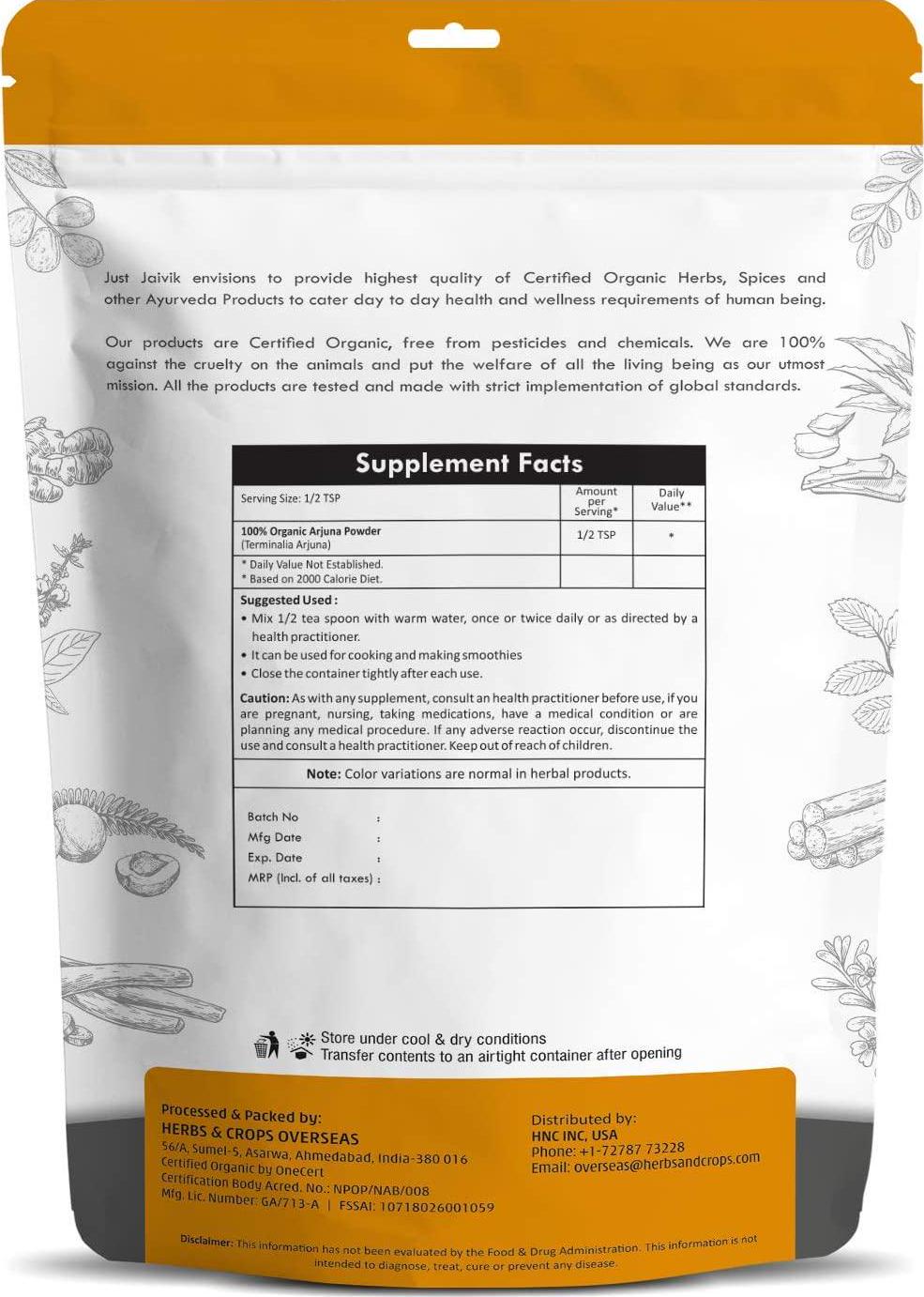 100% Organic Arjuna Bark Powder (Terminalia Arjuna) 1/2 LB, 08 oz, 227g USDA Certified Organic- Biodegradable Resealable Zip Lock Pouch Traditional rejuvenative and Tonic for The Heart*
