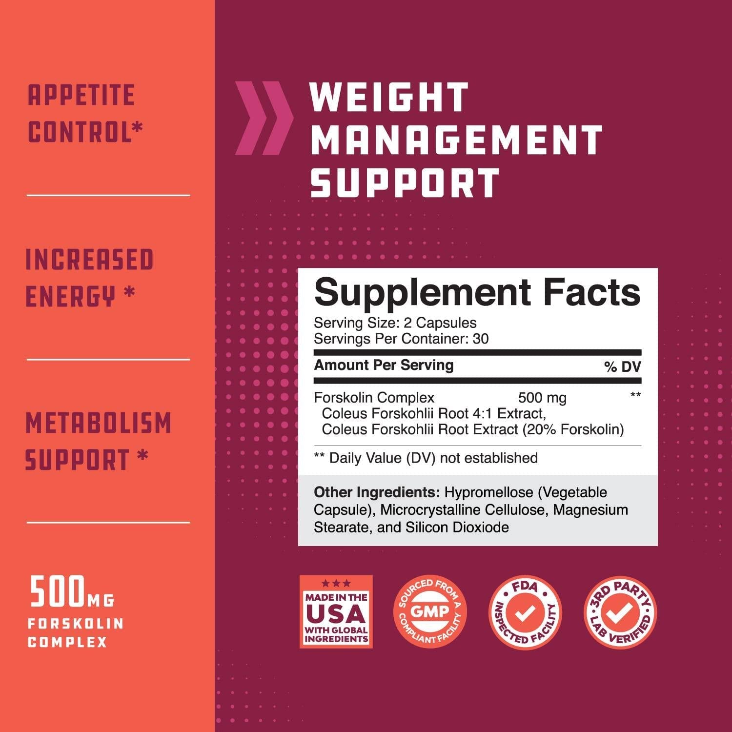 100% Pure Forskolin Extract 60 Capsules - Quality Weight Loss Supplement for Women and Men - Most Potent Coleus Forskohlii on The Market Standardized at 20% - Guaranteed by Natures Craft