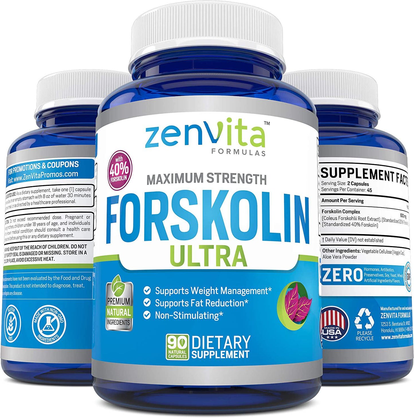 - Ingredients: Forskolin Complex 600 mg per serving - Coleus Forskohlii Root Extract, Standardized 40% Forskolin, Standardized 20% Forskolin. *** OUR FORMULA MIGHT CHANGE A BIT FROM TIME TO TIME BUT THE MAIN INGREDIENTS ARE ALWAYS THE SAME, PLEASE REFER TO THE LABEL IMAGE AT THE TOP FOR THE MOST ACCURATE & UP TO DATE INGREDIENTS, ALL OTHER BOTTLE IMAGES ARE FOR REFERENCE ONLY. ***See more