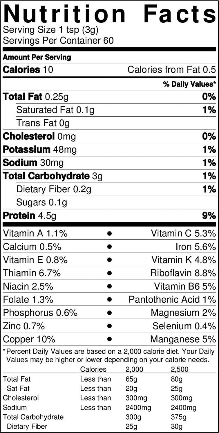 - 60 FULL SERVINGS - 2 MONTH SUPPLY... CONTAINS: No Fillers, No Yeast, No Dairy, No Corn, No Sugar, No Wheat, No Preservatives, No GMO, No Soy. 100% Organic, Vegan, Gluten-Free, Kosher.