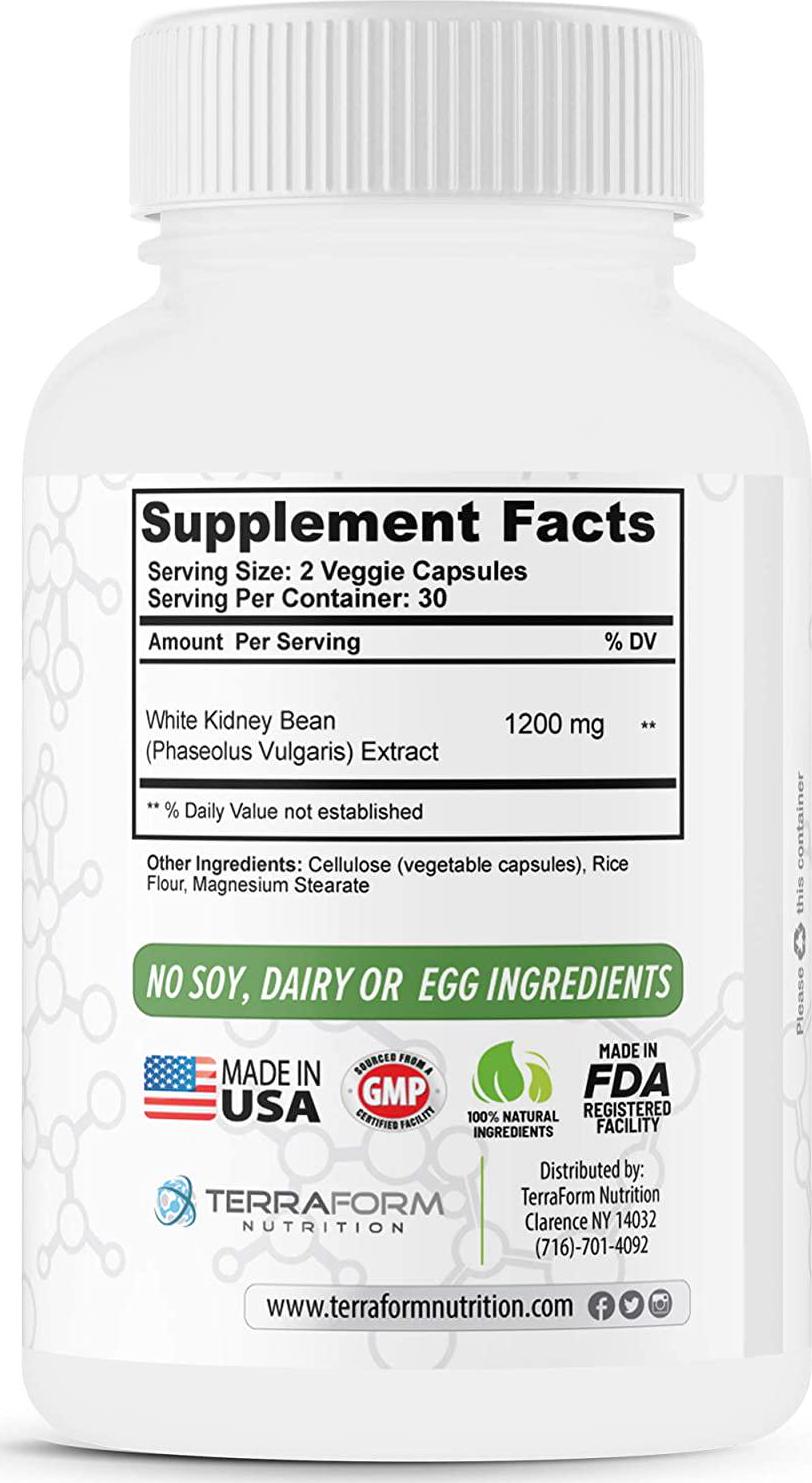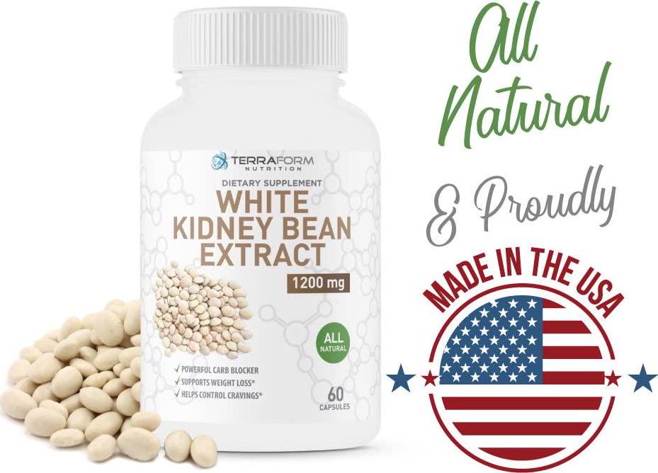 100% Pure White Kidney Bean Extract All-Natural Carb Blocker 1200mg Optimized for Weight Loss and Fat Prevention for Women and Men Made in USA