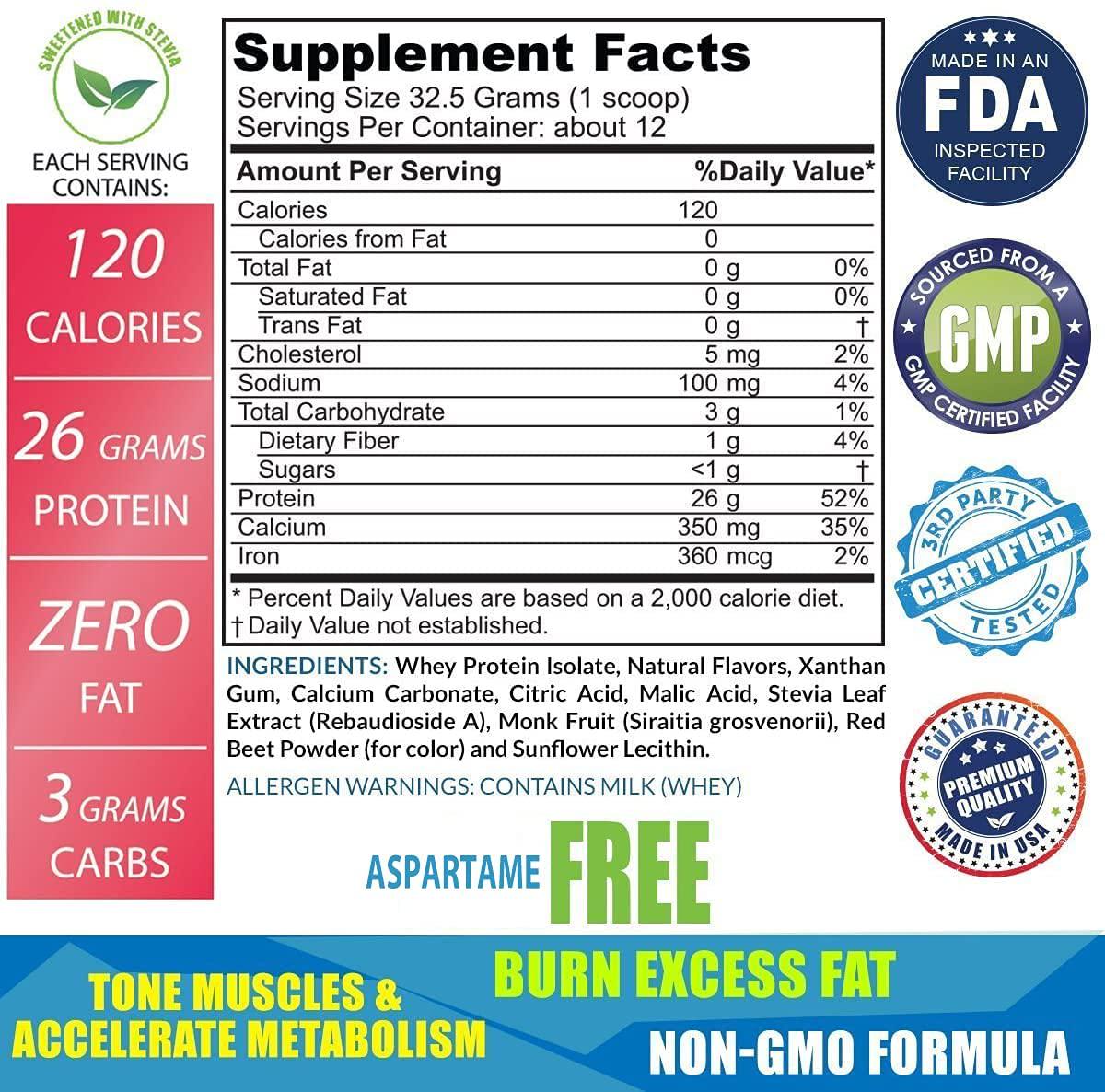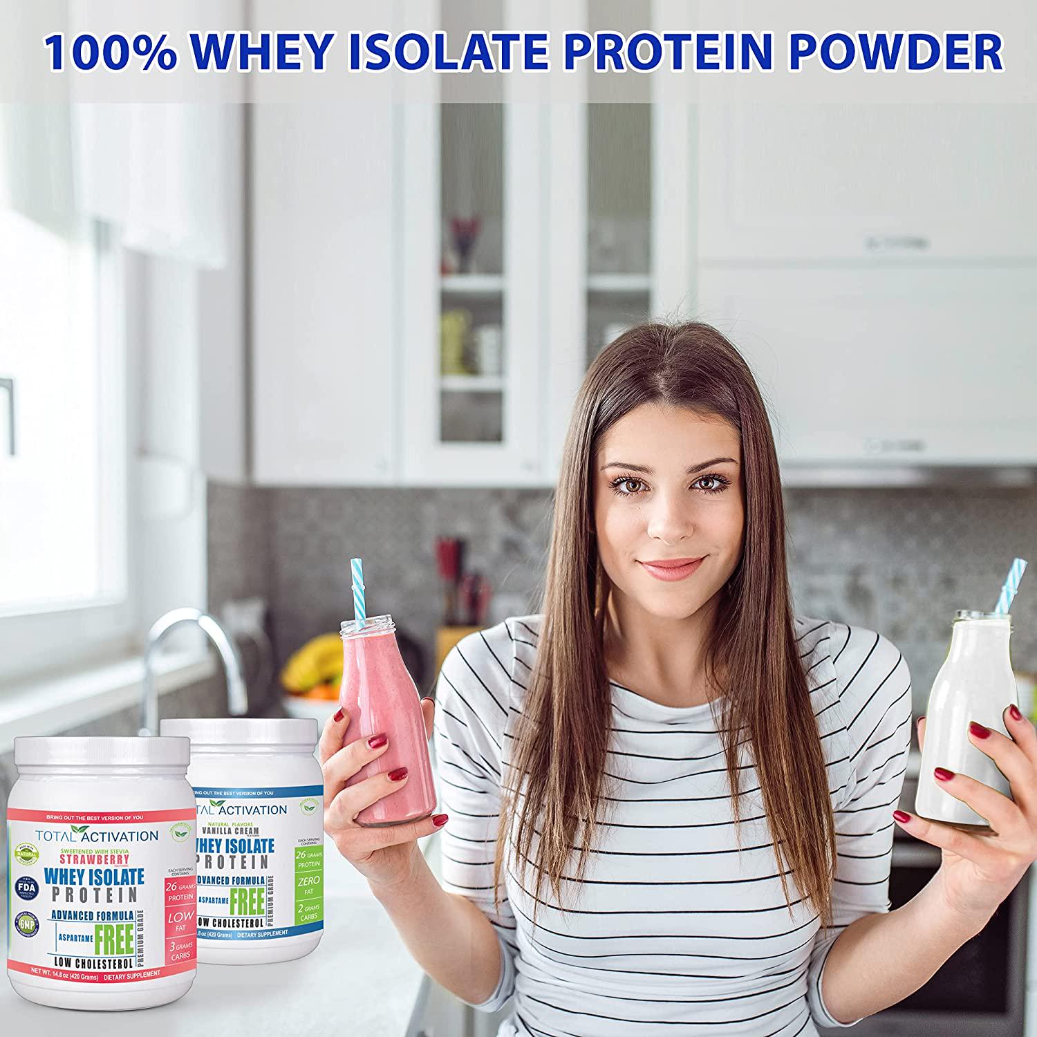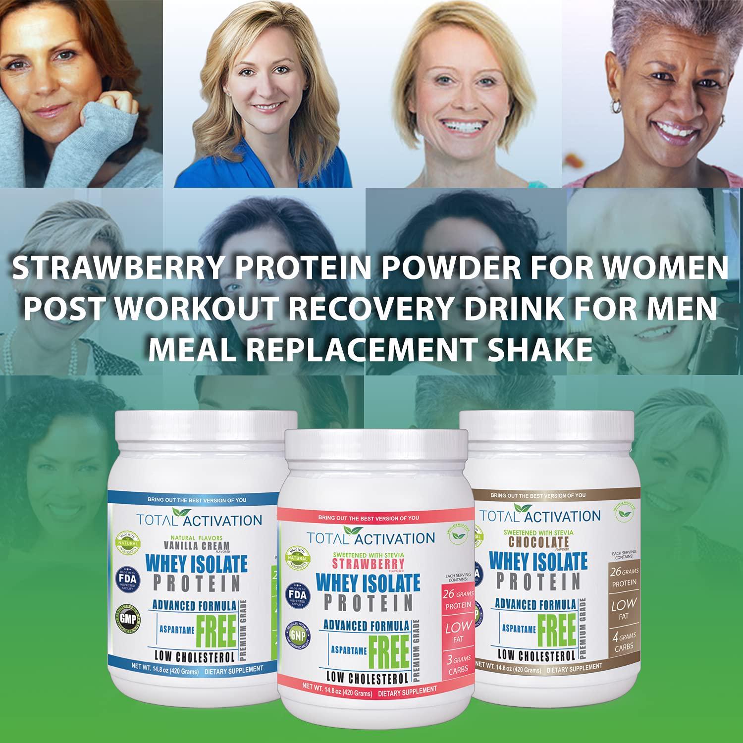 100% Whey Isolate Low Carb Protein Powder Under 1 Gram Sugar Strawberry Protein Powder for Women Weight Loss and Men Post Workout Recovery Drink Meal Replacement Shakes Keto Protein Powder