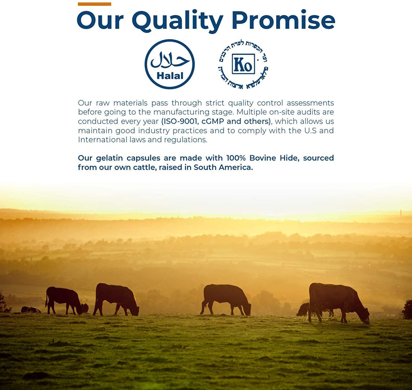 - PURE INGREDIENTS: Highest quality pharmaceuitcal grade gelatin derived from only beef, contains no pork. Kosher and Halal certified. No additives or contaminants. Allergen and Gluten Free.