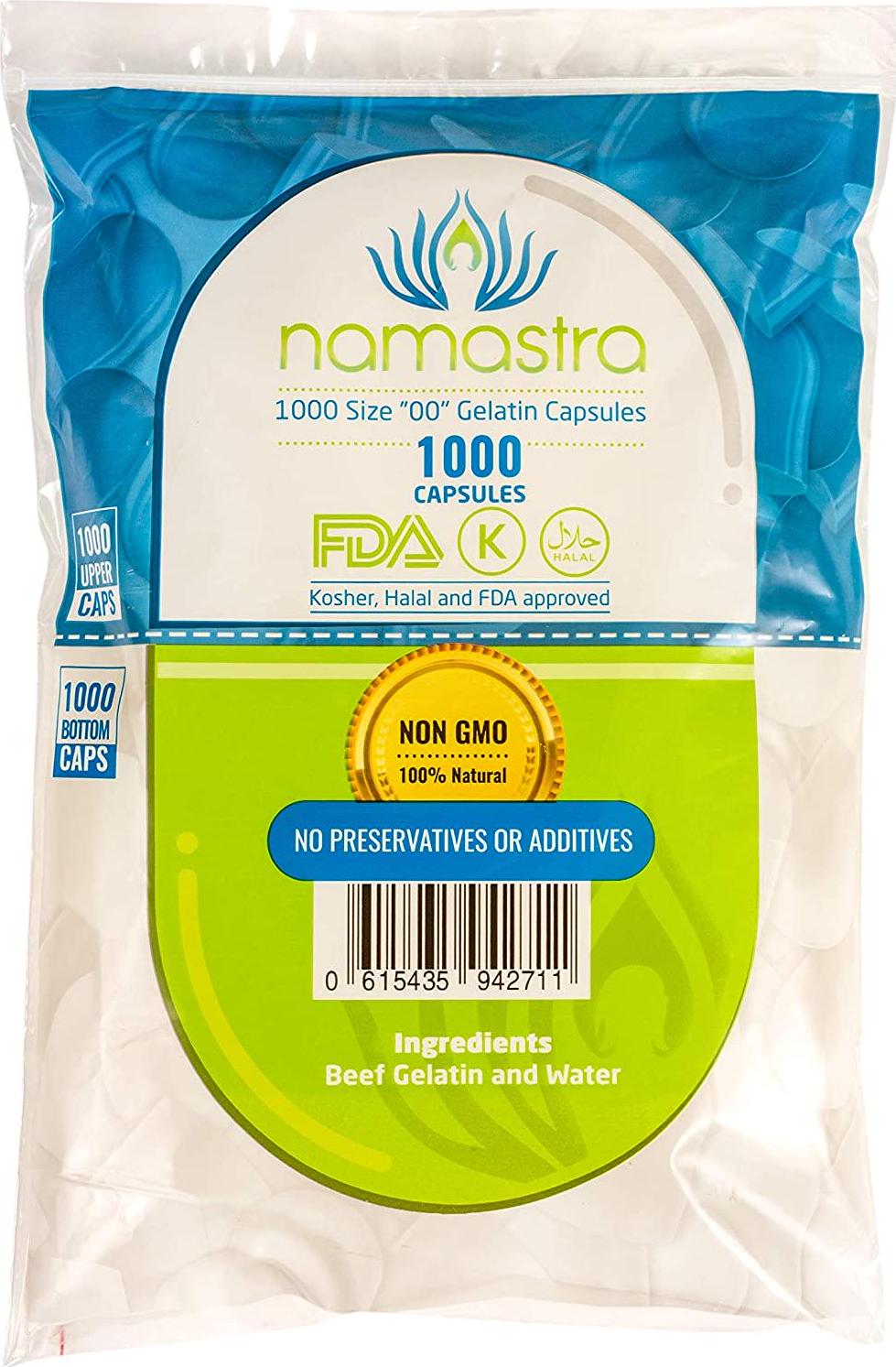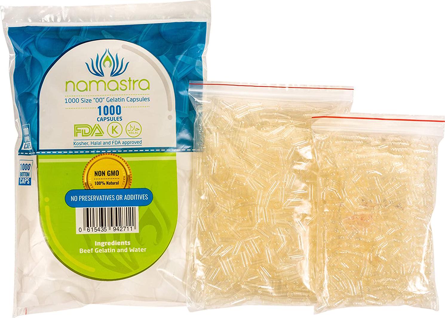 1000ct Namastra Gelatin Capsules Size 00