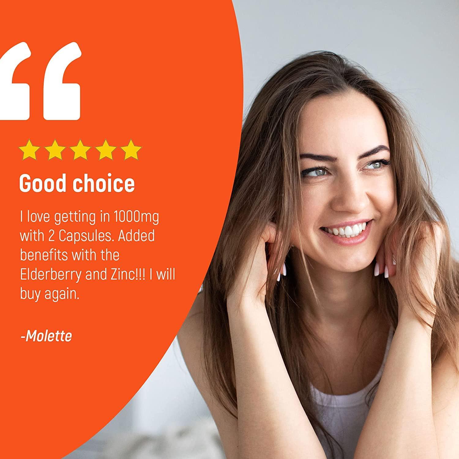 1000mg Vitamin C and Elderberry Supplement - High Potency Vitamin C with Elderberry and Zinc for Immune Support - Easy to Swallow, Non-GMO, GMP-Certified VIT C 1000mg Immune Booster Capsules - 60 Count