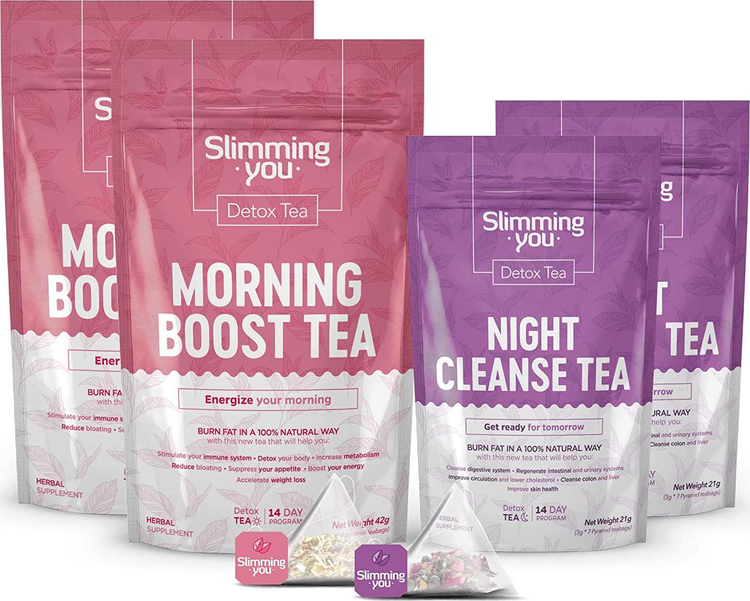 14 Day Detox Tea Bundle - Tea Detox Cleanse Weight Loss Tea 2 Morning Boost Tea (28 Bags) 2 Night Cleanse Tea (14 Bags), All Natural Herbal Slim Tea for Detox and Colon Cleanse, Reduce Bloating