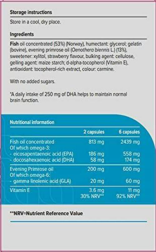 - Hi-EPA fish oil in a formula that may help maintain concentration levels and healthy brain development
