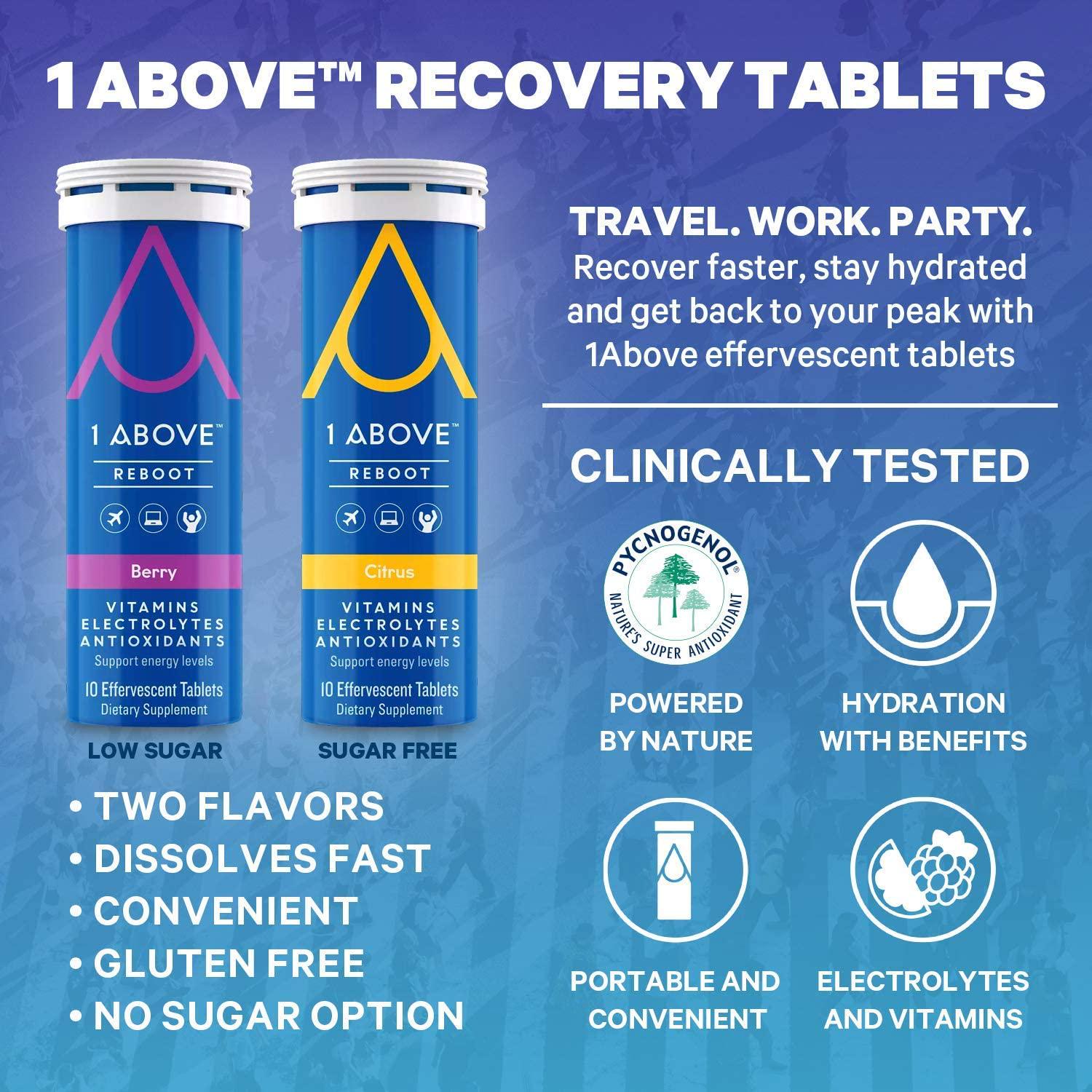 1Above Effervescent Drink Tablets, Vitamins, Super Antioxidant - Pycnogenol, and Electrolytes for Faster Recovery. 10 Count Tube x 1. Berry