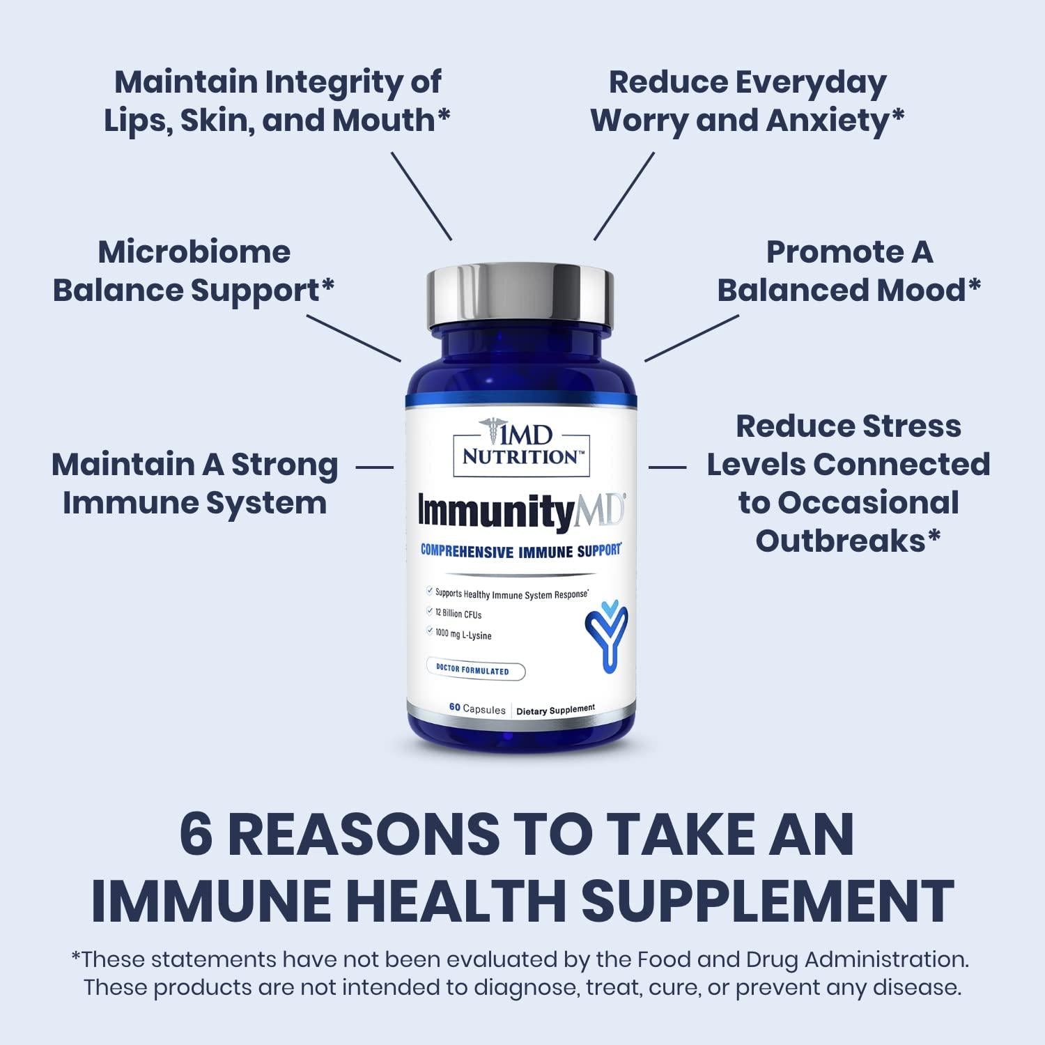- LOWER STRESS FOR FEWER BREAKOUTS: When you are stressed out, your body is more ly to have breakouts and other immune health issues. ImmunityMD includes the essential amino acid L-Lysine in order to help you reduce and control stress levels, helping reduce the burden placed on your immune system.*