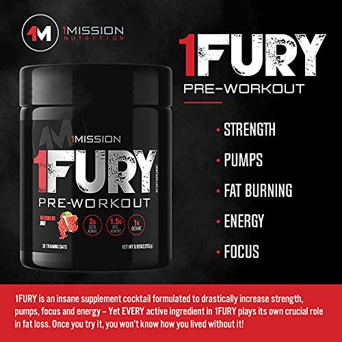 1Mission Nutrition 1Fury, Advanced Workout Powder, Fat Burning Pre-Workout, Great for Strength, Energy and Pumps (30 Servings, Watermelon Rage)