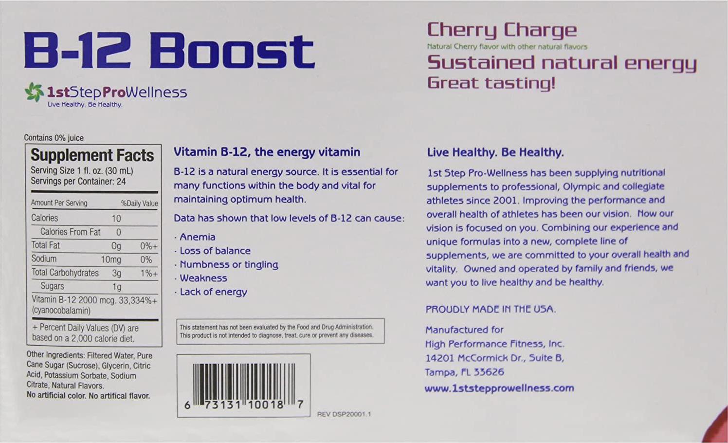 12 bottles, 1st step, 1st step energy, 2 fl oz, b-12 boost, cherry charge, energy, energy boost, liquid supplement, usa