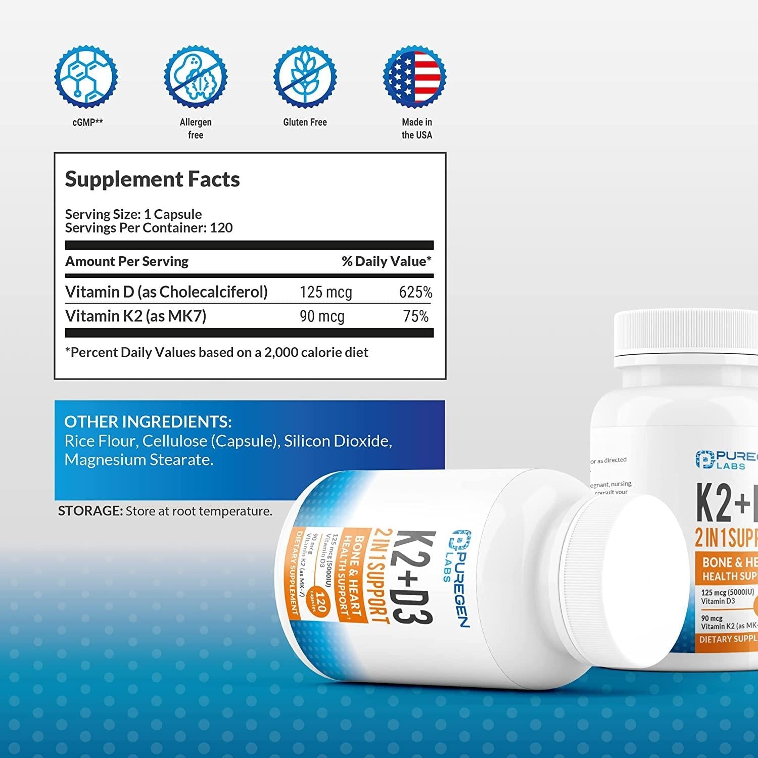 - POWERFUL COMBINATION: 120 day supply of a potent blend of VITAMIN D3 (5000IU) and VITAMIN K2 as MK-7 (90 MCG).