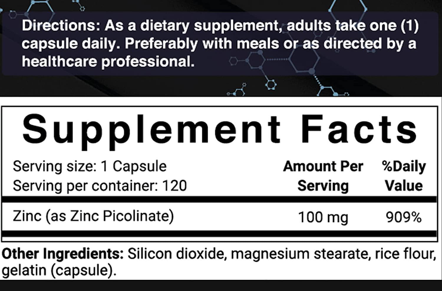 - Super Zinc Supplement 100mg, Zinc Picolinate Capsules, 120 Counts, Non-GMO. 2 Pack