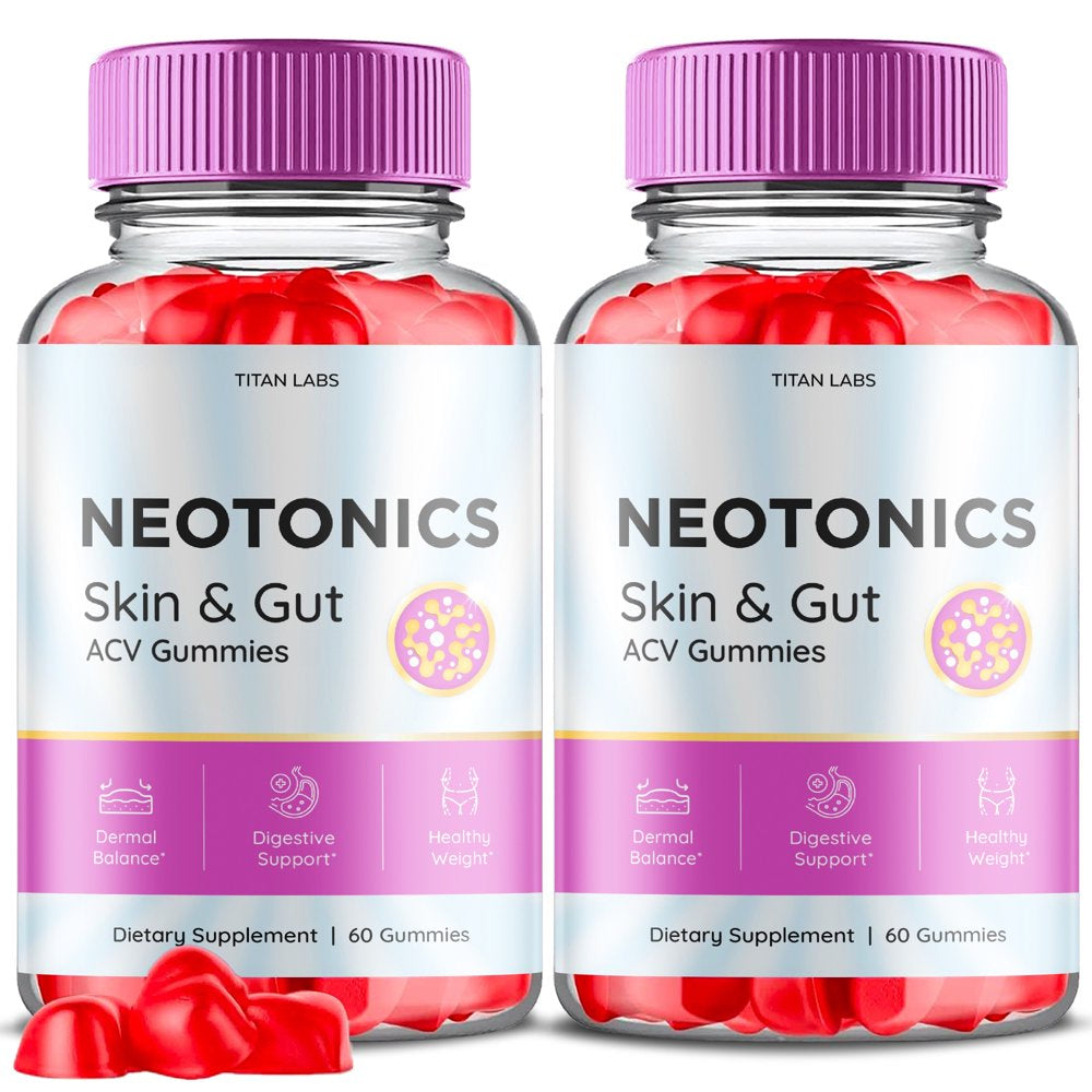 (2 Pack) Neotonics Skin and Gut ACV Gummies - Apple Cider Vinegar Supplement for Dermal Balance, Digestive Support, Healthy Weight - Dietary Supplements for Skin and Gut - 120 Gummies
