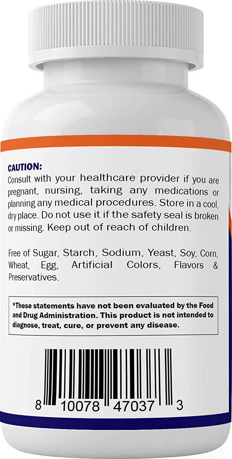 - Free of sugar, starch, soy, yeast, corn, wheat, egg, artificial color, flavor & preservatives.