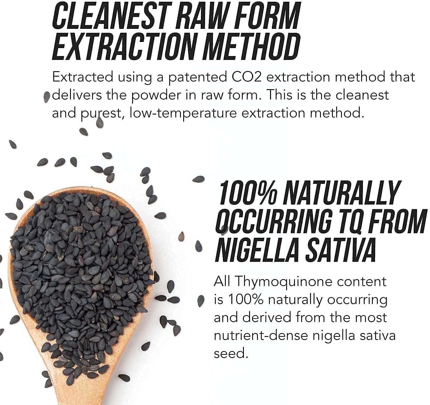 - Derived from Nigella Sativa, Naturally Occurring Thymoquinone, Delivered in Raw Form: Using the cleanest CO2 Extraction plus the most nutrient-dense nigella sativa seeds, we derived a powdered black seed extract that contains at least 20% concentration of naturally occurring Thymoquinone. All bioactives are preserved, and the extract is in true Raw form.