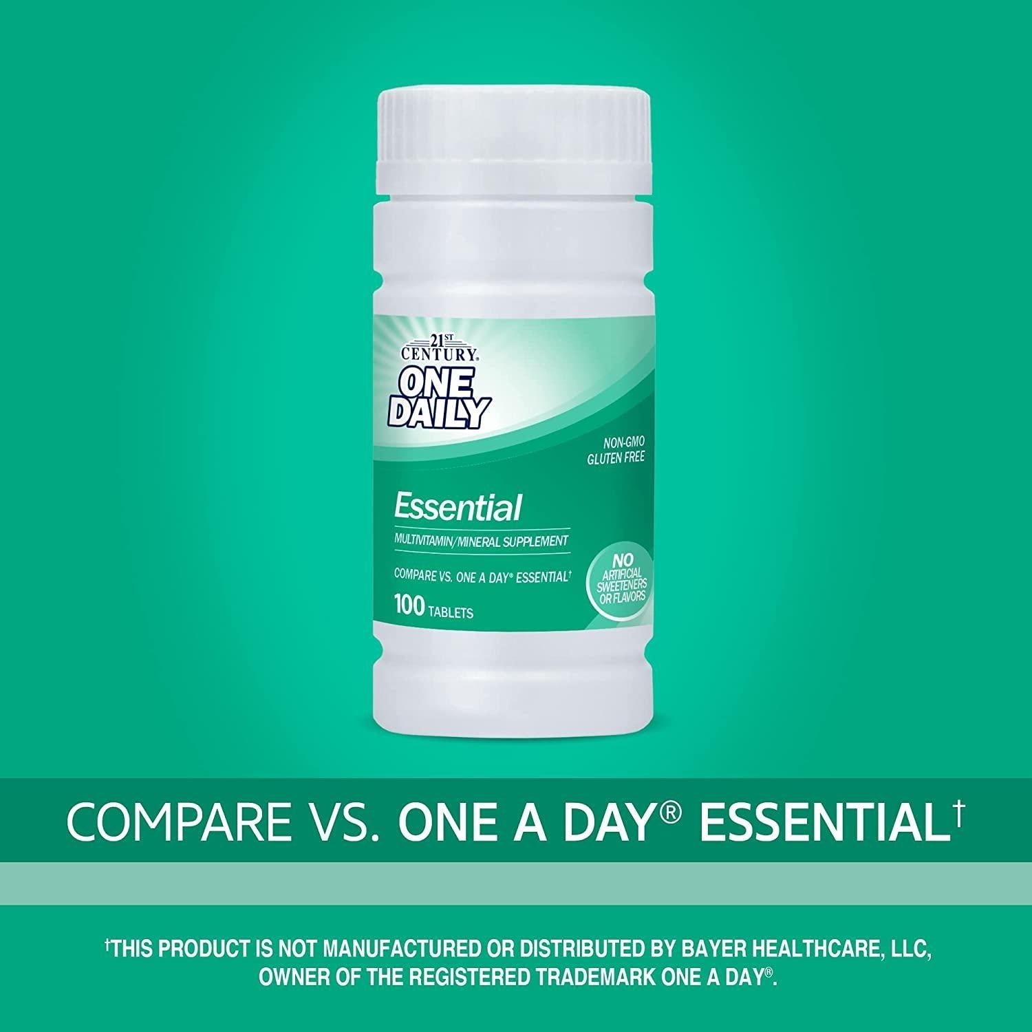 100 count, 21st century one daily essential tablets, essential nutrients, gluten free, high quality, laboratory tested, multivitamin, one a day