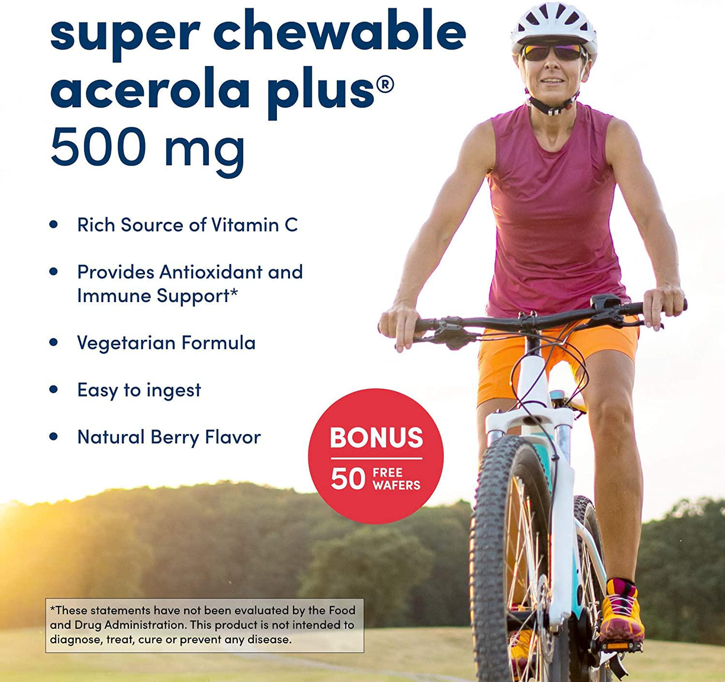 500mg, acerola chewable wafers, acerola plus, american health, berry, chewable wafers, organic, vitamins