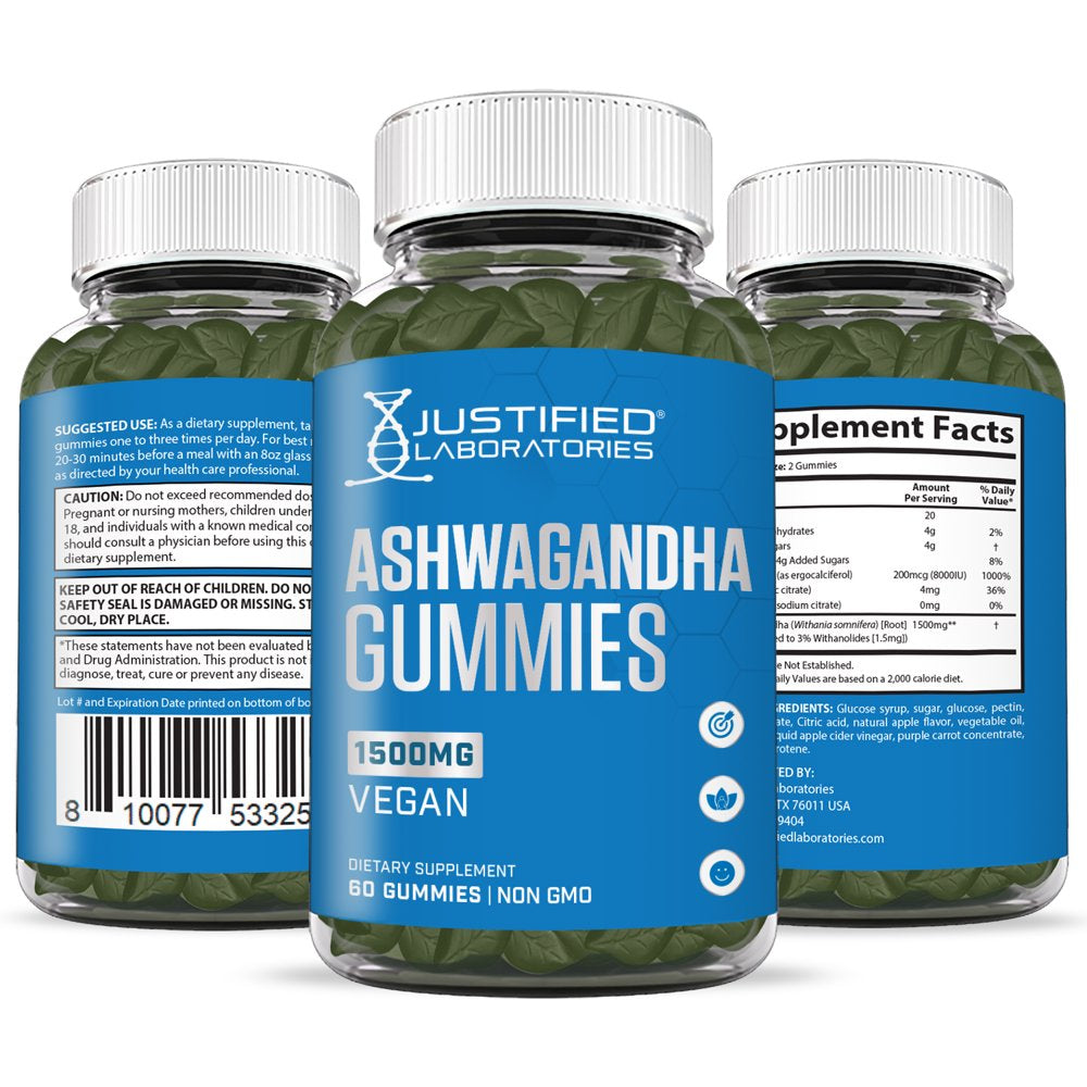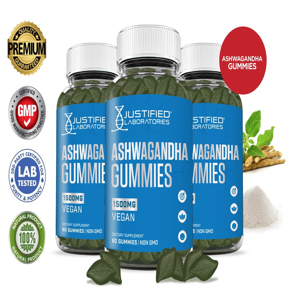 (3 Pack) Justified Laboratories Ashwagandha Gummies 1500MG Energy 180 Gummys
