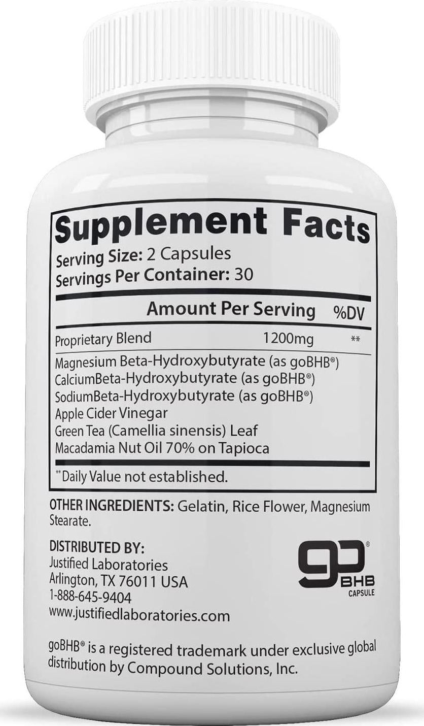 - Ingredients: Proprietary Blend of goBHB, Apple Cider Vinegar, Macadamia Nut Oil and Green Tea Leaf