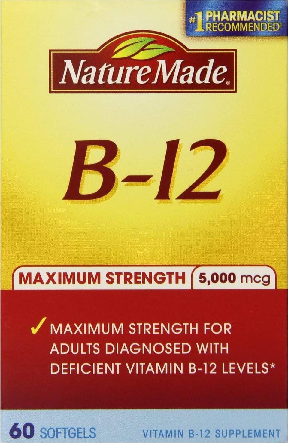 (3 Pack)-Nature Made Maximum Strength Vitamin B-12 Soft gel, 5000 mcg, 60 Count each