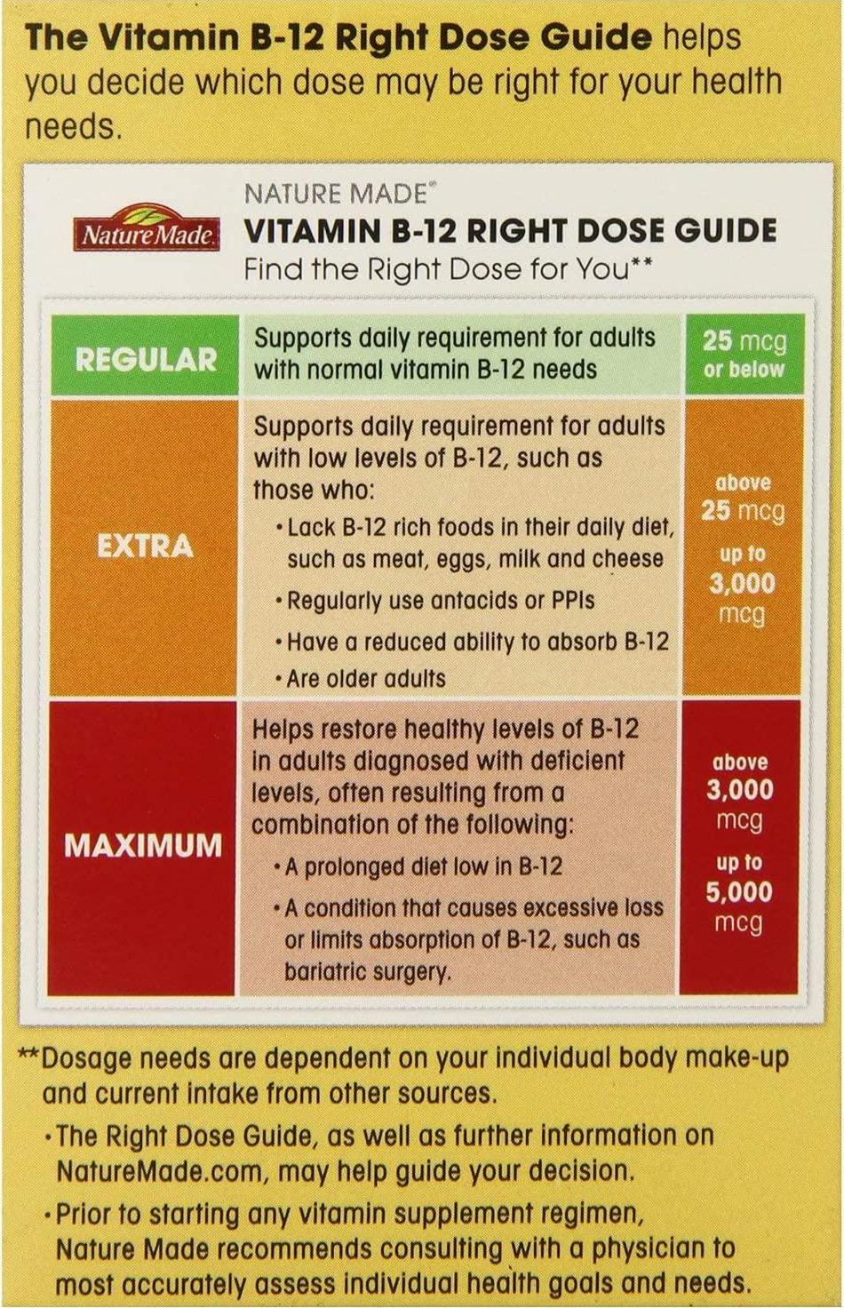 This supplement helps restore healthy levels of vitamin B12 in adults diagnosed with deficient B12 levels. Approximately 9% of American adults are deficient in vitamin B12.** Nature Mades Maximum Strength formula provides 5,000 mcg of vitamin B-12, a nutrient that supports cellular energy production. Vitamin B12 is also important for proper red blood cell formation, helps maintain nervous system health, and helps maintain a healthy homocysteine level. Maximum strength for adults diagnosed with deficient b-12 levels Helps restore healthy levels of b-12 in adults with very low levels Supports cellular energy production in the body Ingredients: Gelatin, Soybean Oil, Glycerin, Water, Yellow Beeswax, Colors Added, Soy Lecithin.