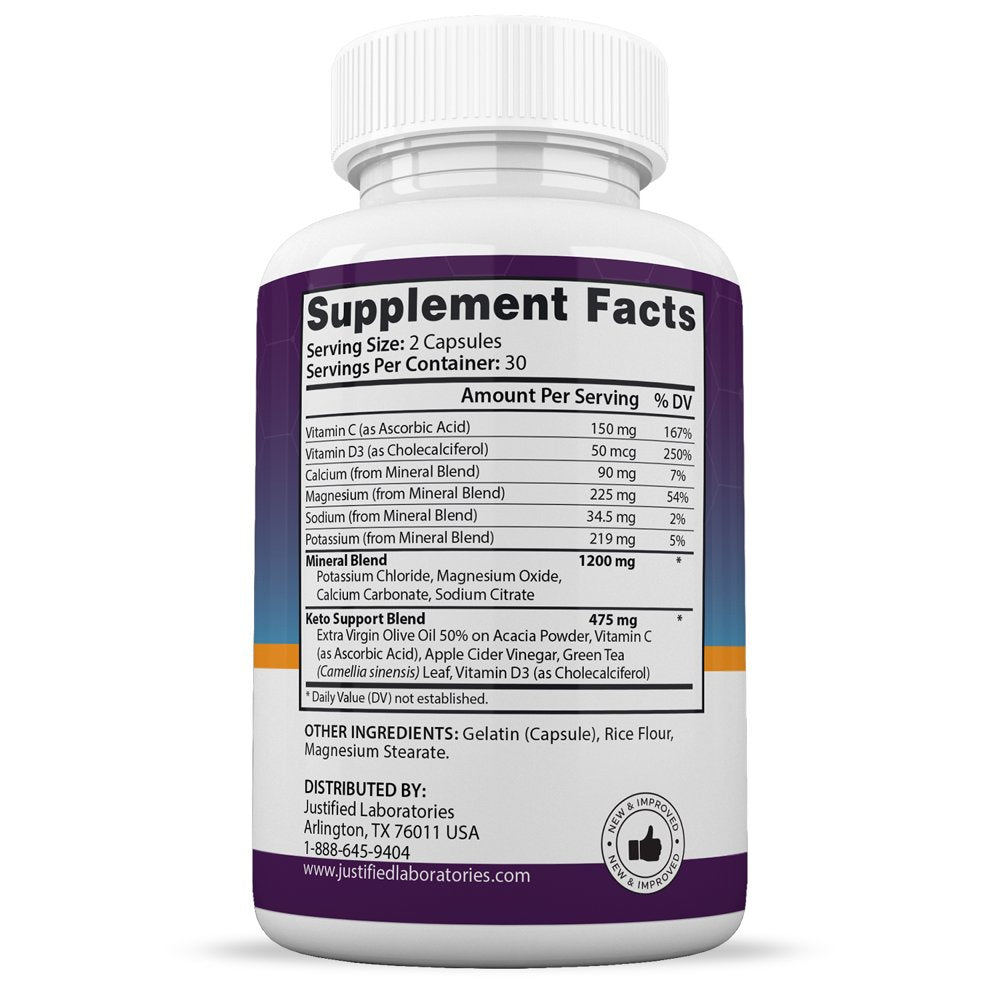 REAL VITA KETO ACV PILLS: Justified Laboratories Keto Pills 1275 mg Proprietary Keto formula includes magnesium, calcium and sodium, which are key nutrients your body can be depleted of during ketosis.