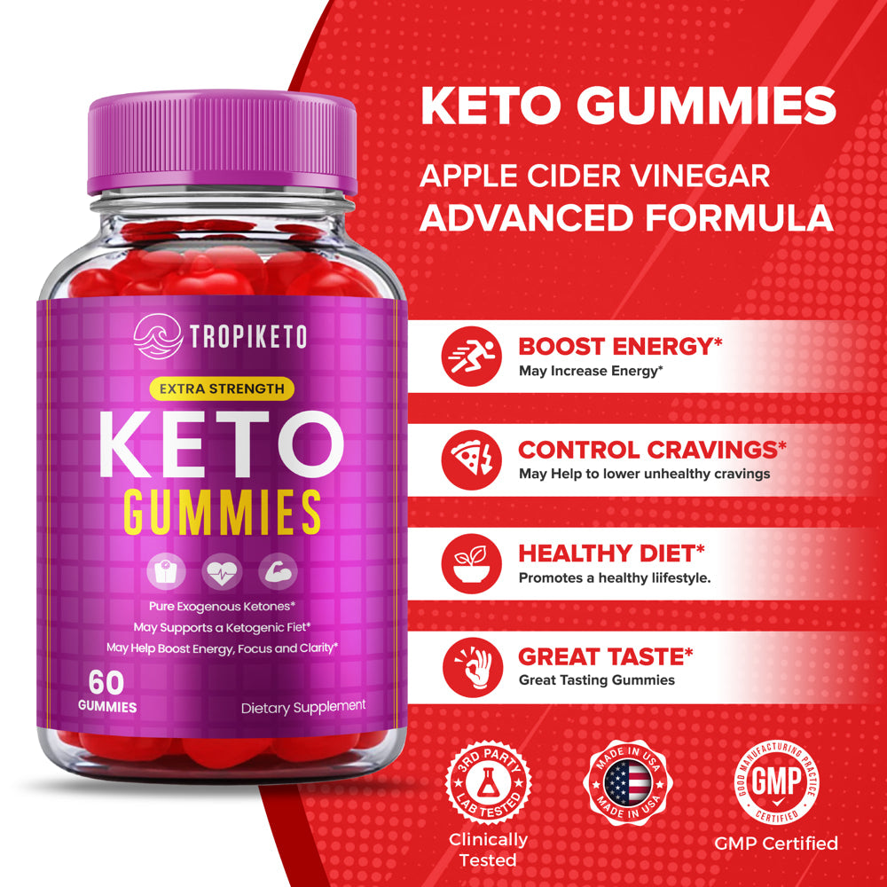 - Tropiketo Gummies - Tropiketo Keto Gummies for weight loss contains beet root powder and pomegranate juice known to help aid increased enery and stomach fat. Each serving of acv gummies contain 1000mg of apple cider vinegar supplement