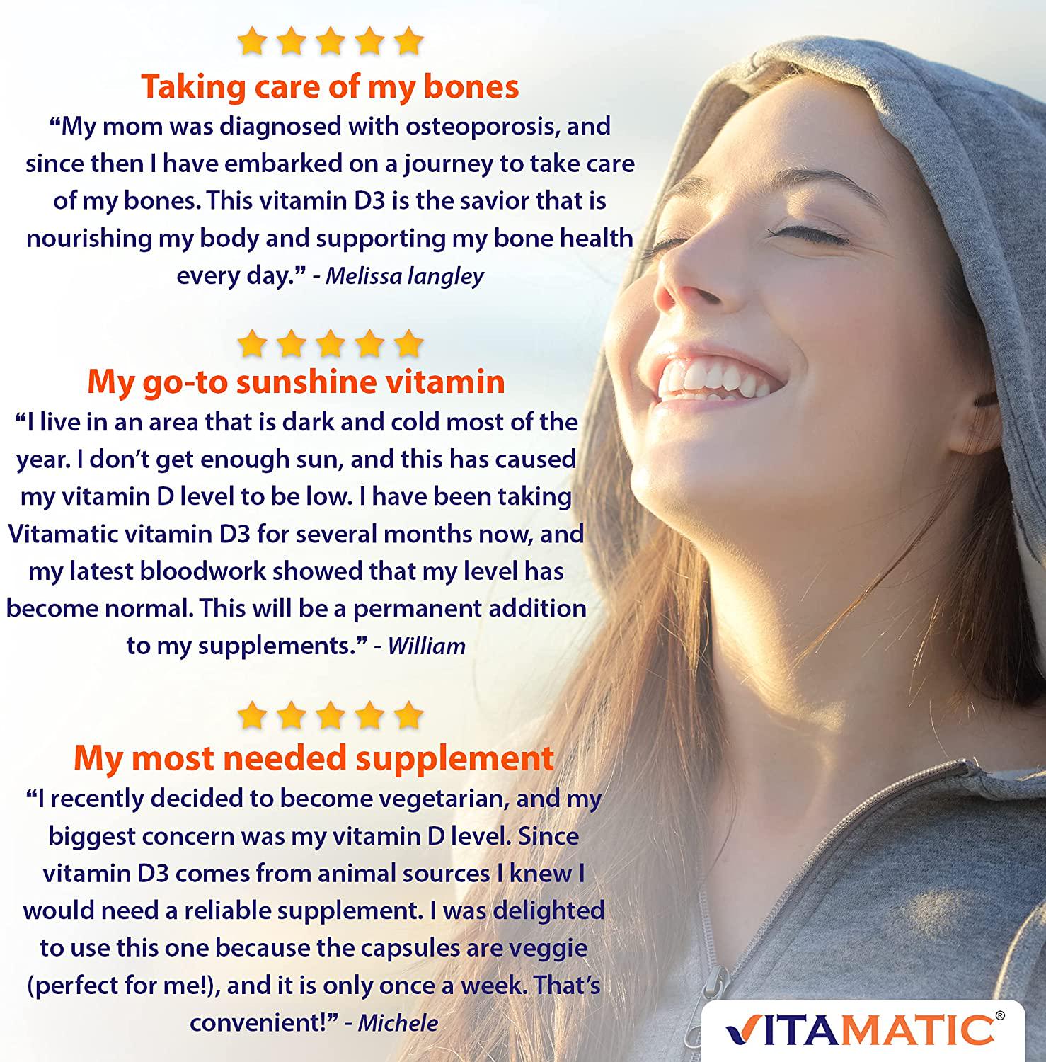 - Vitamatic Vitamin D3 is a very important nutrient for overall healthy muscle function, increases calcium absorption for stronger bones, teeth, and immune support