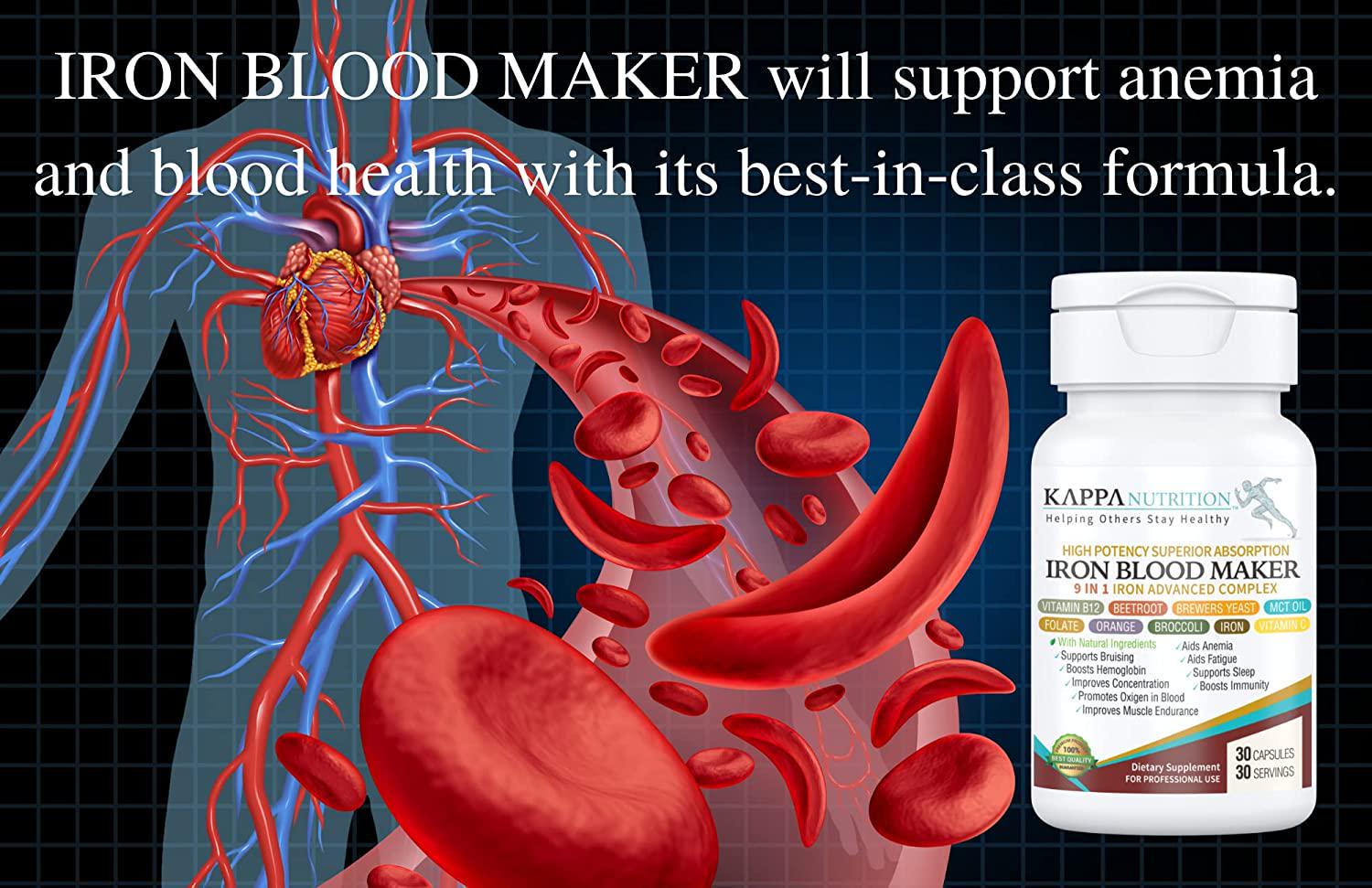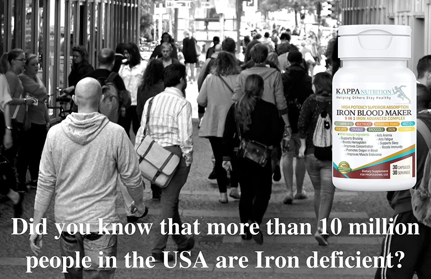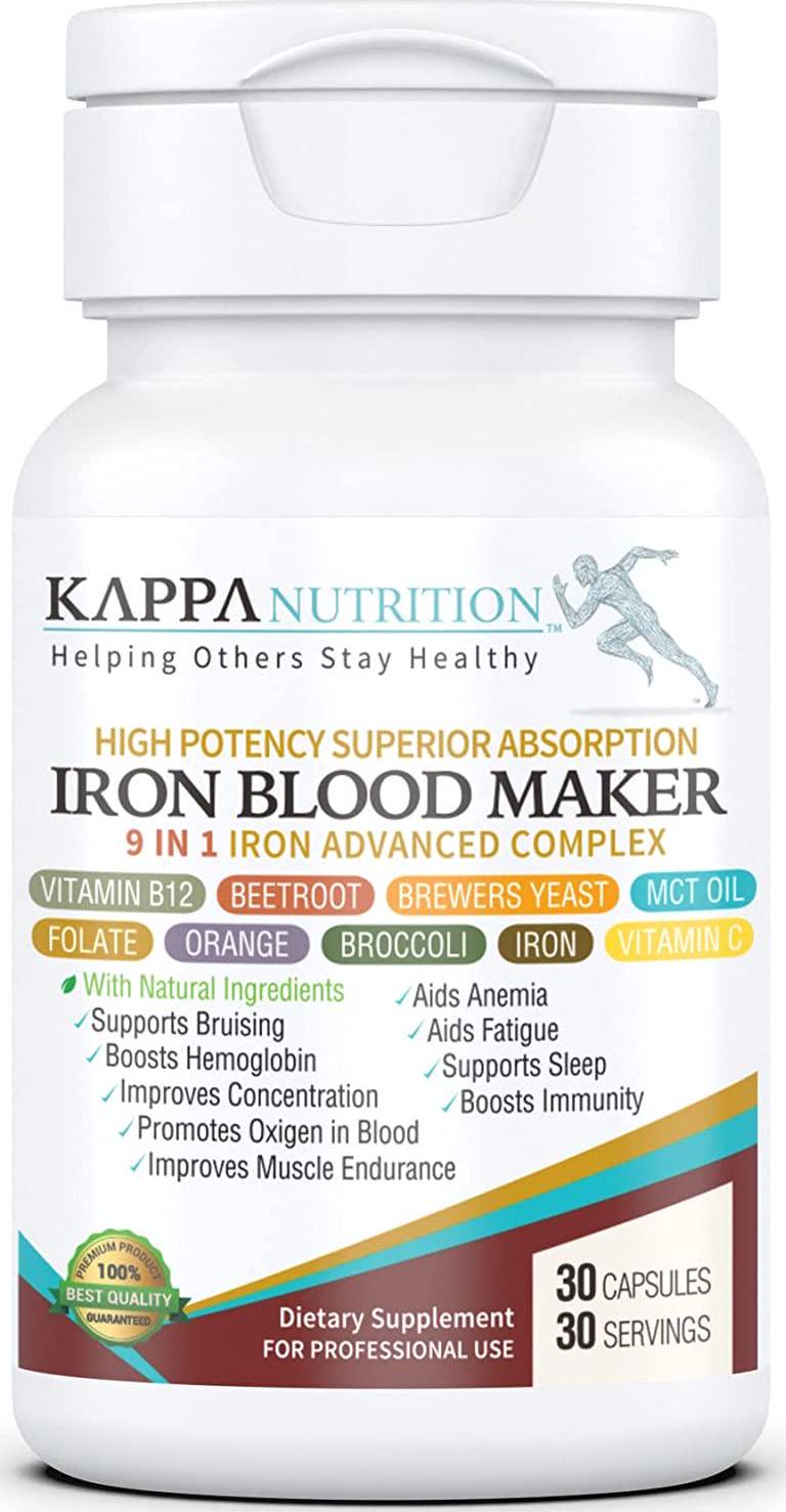 WHY IRON BLOOD MAKER 9 IN 1 ADVANCED COMPLEX IS BETTER AND MORE BIOAVAILABLE OUR COMMITMENT TO EXEPTIONAL QUALITY. We create the perfect balance and superior supplements through the latest technologies, and the purest nutrients nature has to offer to us. Our compromise is to improve the health of those that trust our superior quality supplements to enhance their lives. Integrity and quality steer everything we make, and our commitment to our customers is to produce the highest advanced quality nutritional supplements out there. KAPPA NUTRITION IRON BLOOD MAKER 9 IN 1 ADVANCED COMPLEX helps to increase iron blood levels and reduce fatigue without common gastrointestinal side effects such as constipation, nausea or headaches. We make it with earths real food oranges, beets and broccoli, plus iron, B12 & folic acid for healthy red blood cells production, and non-acidic vitamin C to support iron absorption in your body. It's gentle enough to take it any time of the day to support iron in your blood.