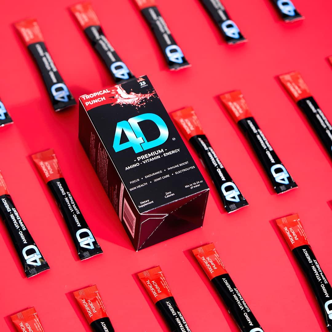 4D Clean Energy Drink Mix + Electrolytes + Immune Support + MultiVitamins + Joint and Skin Support (Tropical Punch Flavor, 25 Pack)