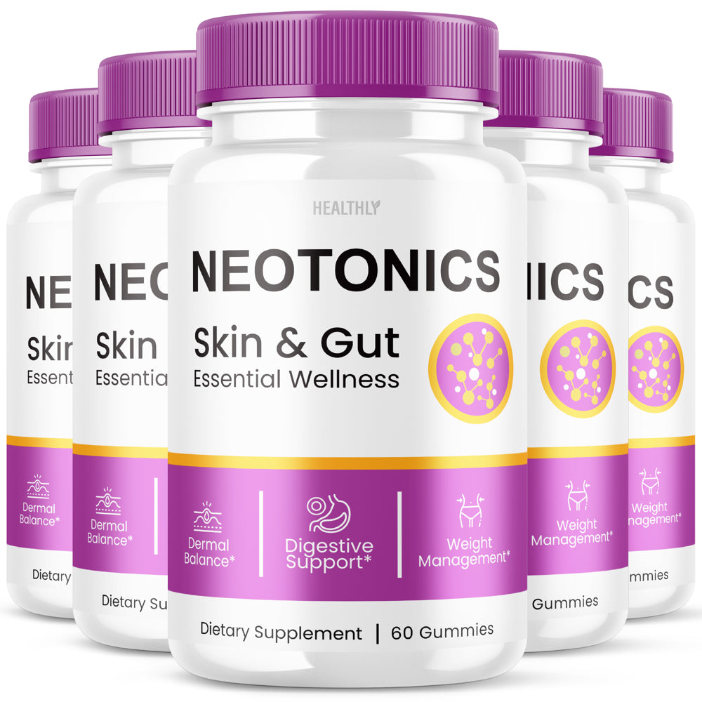 Brand: Healthly Unit Count: 300.00 Count Item Form: Gummy Product Benefits: Neotonics Skin and Gut Gummies Package Information: Bottle Number of Items: 5 Material Feature: Vegan
