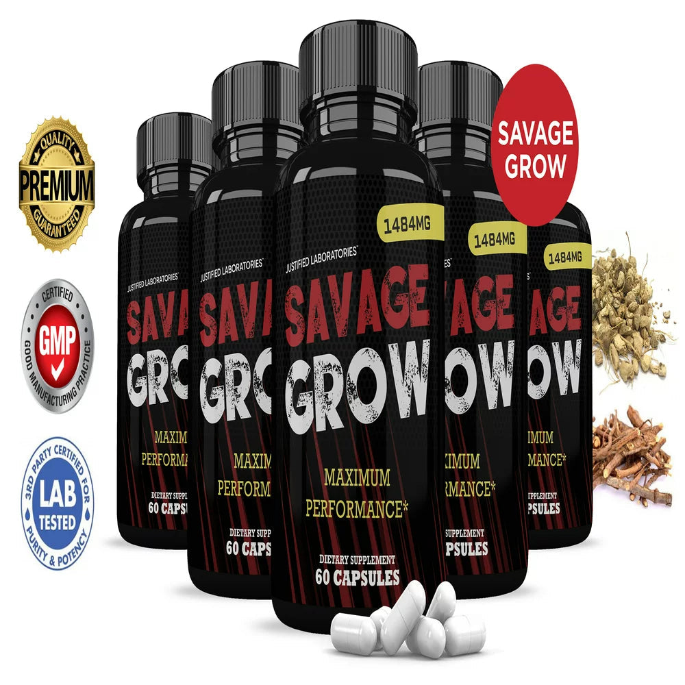 (5 Pack) Savage Grow Men’S Health Supplement 1484Mg 300 Capsules