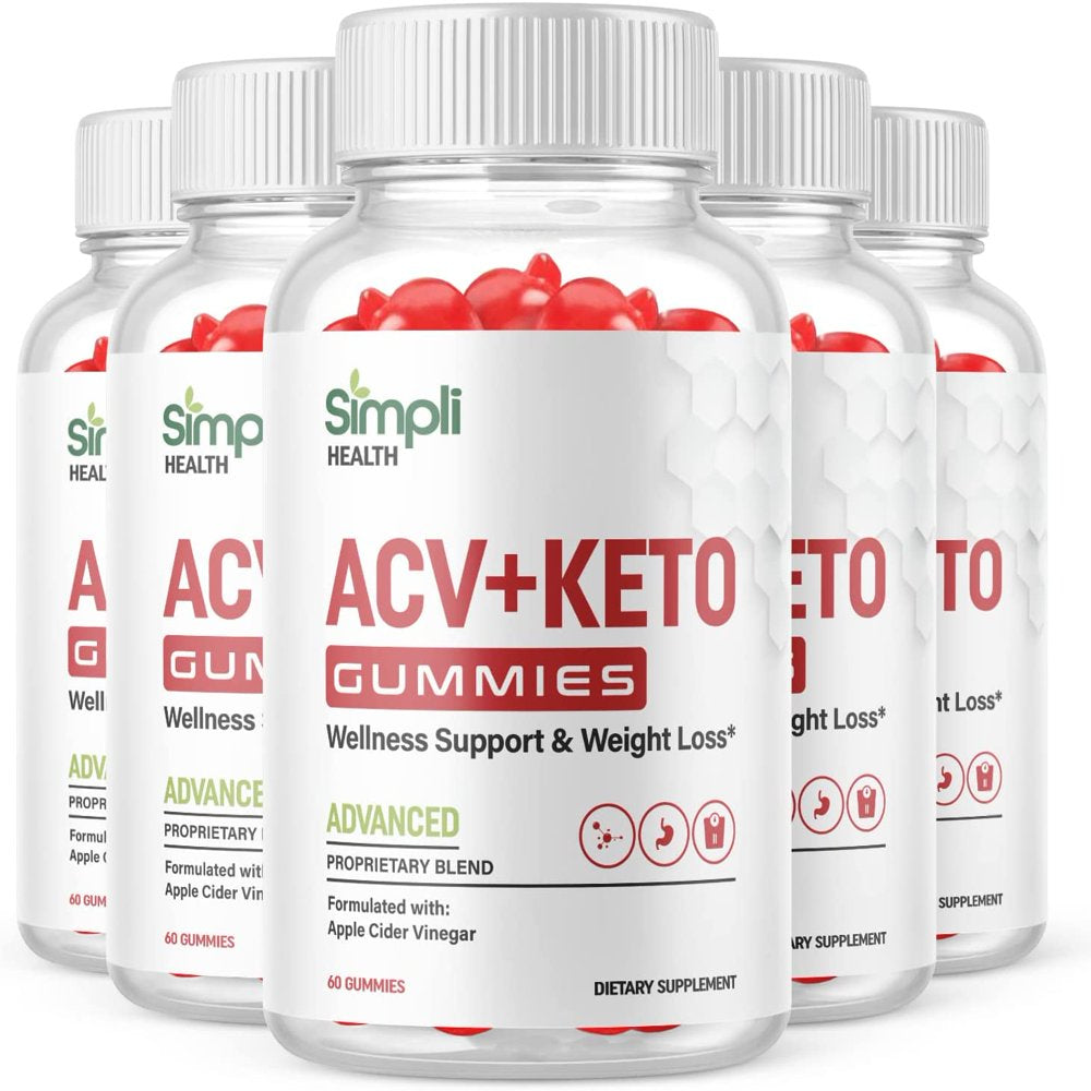 (5 Pack) Simpli Health ACV Keto Gummies - Energy & Focus Boosting Dietary Supplements for Weight Management & Metabolism - Fat Burn - 300 Gummies