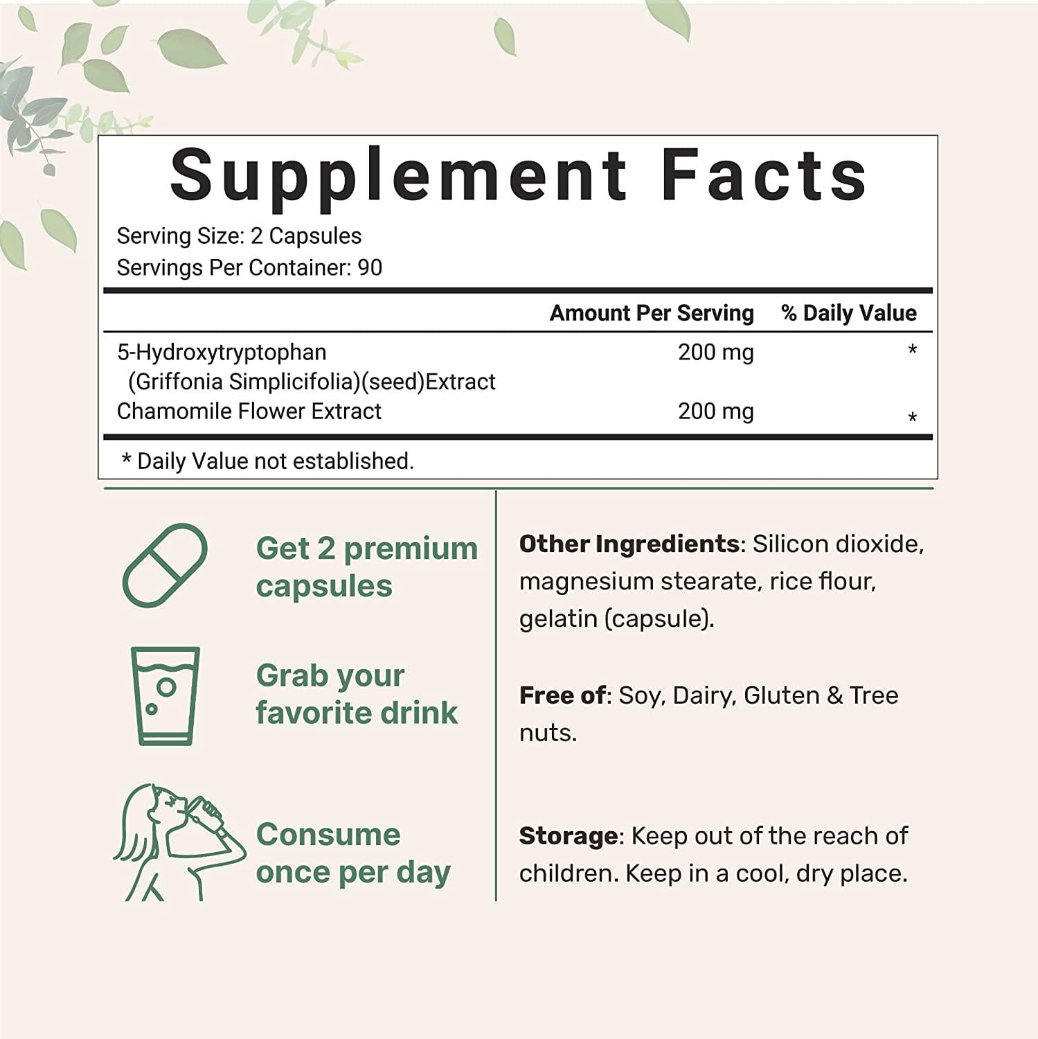 - 5HTP Supplements (5HTP Extract), 200mg Per Serving, 180 Softgels, 5HTP for Women and Men, Non-GMO.
