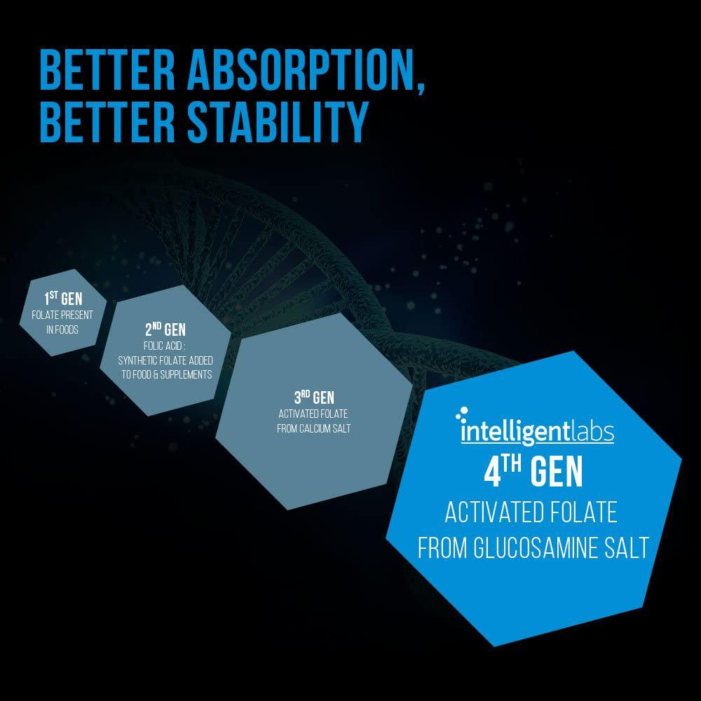- ★ 4TH GENERATION ACTIVATED FOLATE ★ Quatrefolic Acid is the 4th level of development in folate supplements. It has superior stability, purity and is better absorbed than all other 5 MTHF supplements because it’s bound to glucosamine instead of calcium. Don’t trust your health to an inferior supplement!