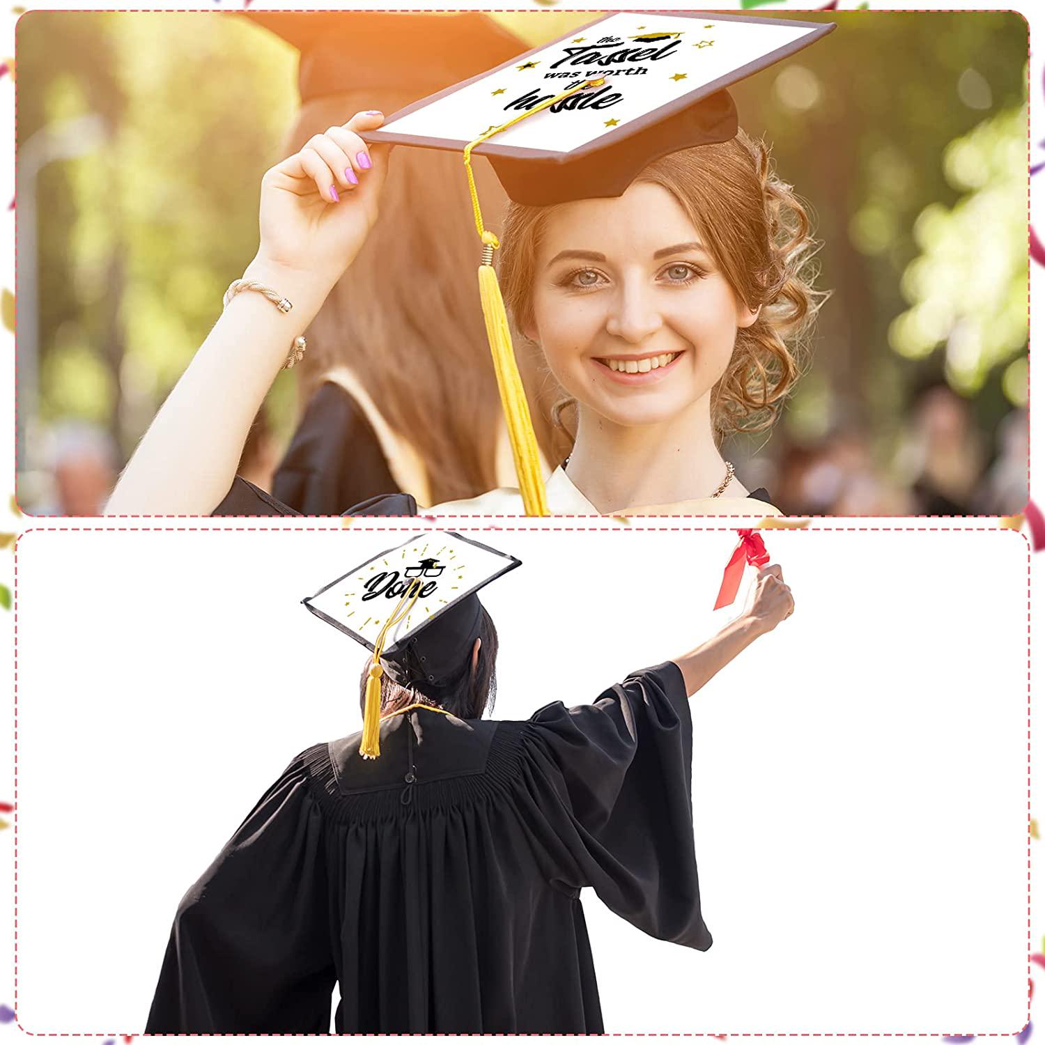 - Vibrant Graduation Paper Set: you will receive 5 pieces of the blank white adhesive grad hat topper sticker and 1 piece grad hat design with golden tassel, enough quantity for students to complete a graduation celebration party decor, ideal way to show student achievements