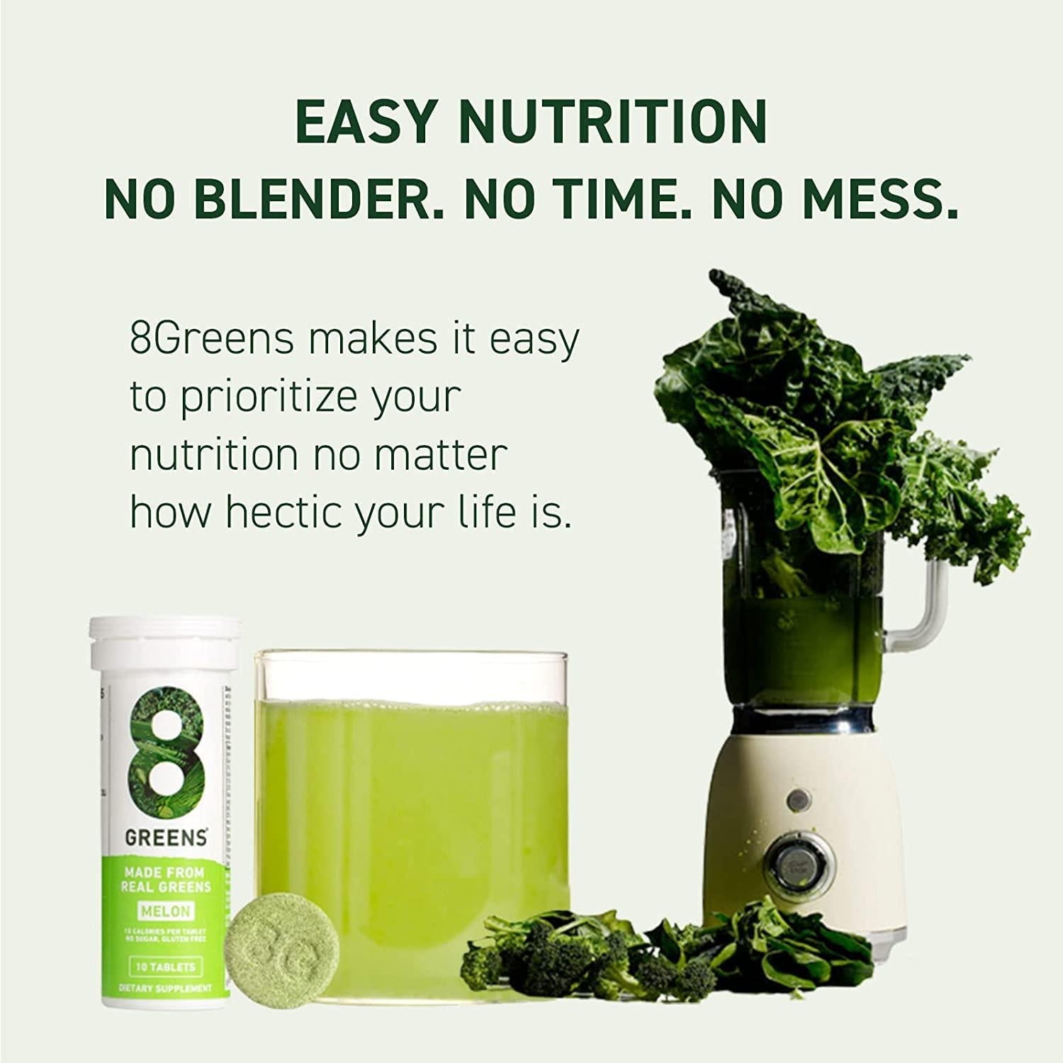 8Greens Melon Effervescent Tablets - Daily Superfood- Super Greens Vitamins, Vegan, Gluten Free, Non-GMO for Immune Support (Pack of 3 Tubes, 30 Tablets)