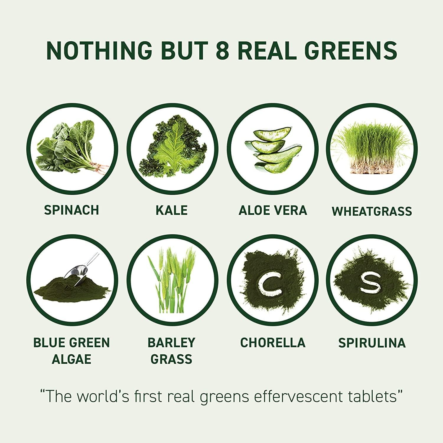 - 8 DAILY GREENS: Melon fizzy tablets made from 8 super greens including Spinach, Wheatgrass, Kale, Blue Green Algae, Spirulina, Aloe Vera, Chlorella & Barley Grass.