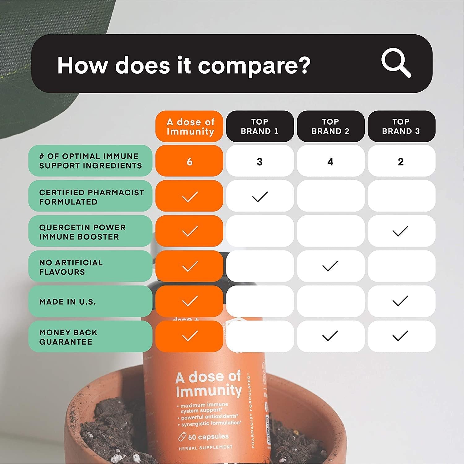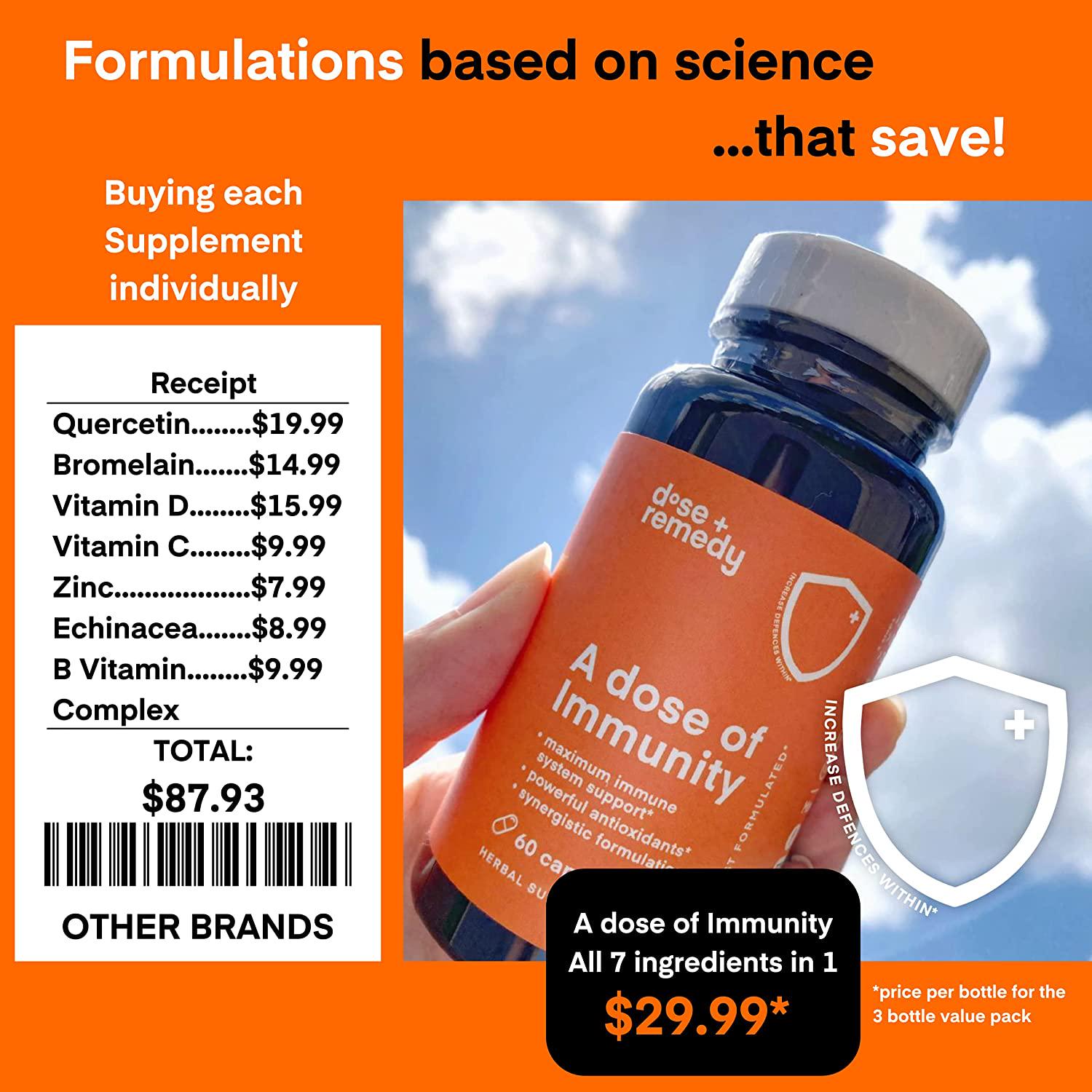 A Dose of Immunity Immune Support Supplement for Respiratory Health and Wellness Bioflavanoids Vitamin C Vitamin D Zinc Quercetin B Vitamins Echinacea Bromelain for Antioxidant Vegan Non GMO (1 Bottle)