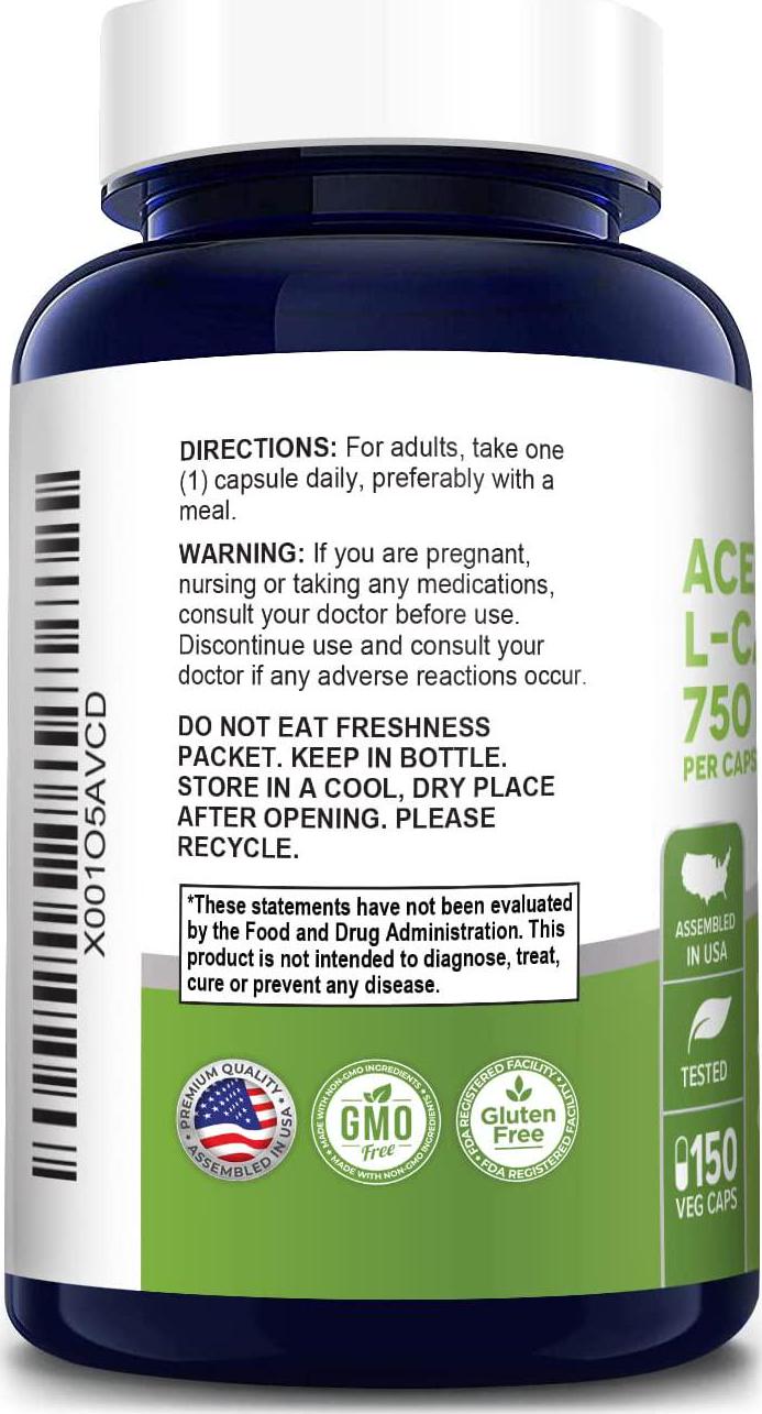750mg capsules, acetyl l-carnitine, brain function, gluten free, high potency, non-gmo, supplement, usa, veggie capsules